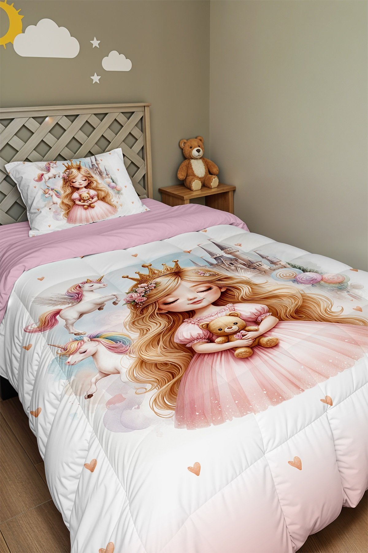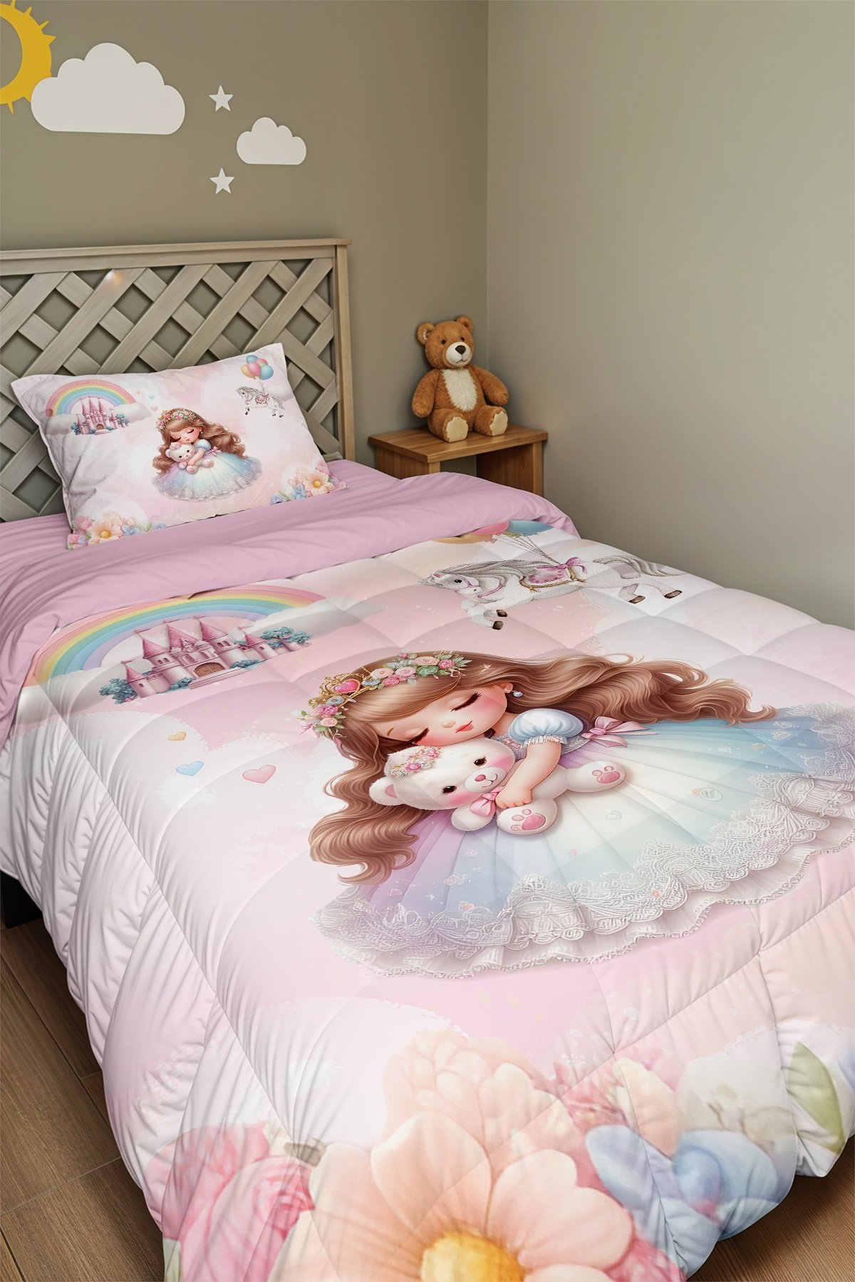 Ayıcıklı Prenses Desenli Tek Kişilik Yorgan ve Yastık Kılıfı