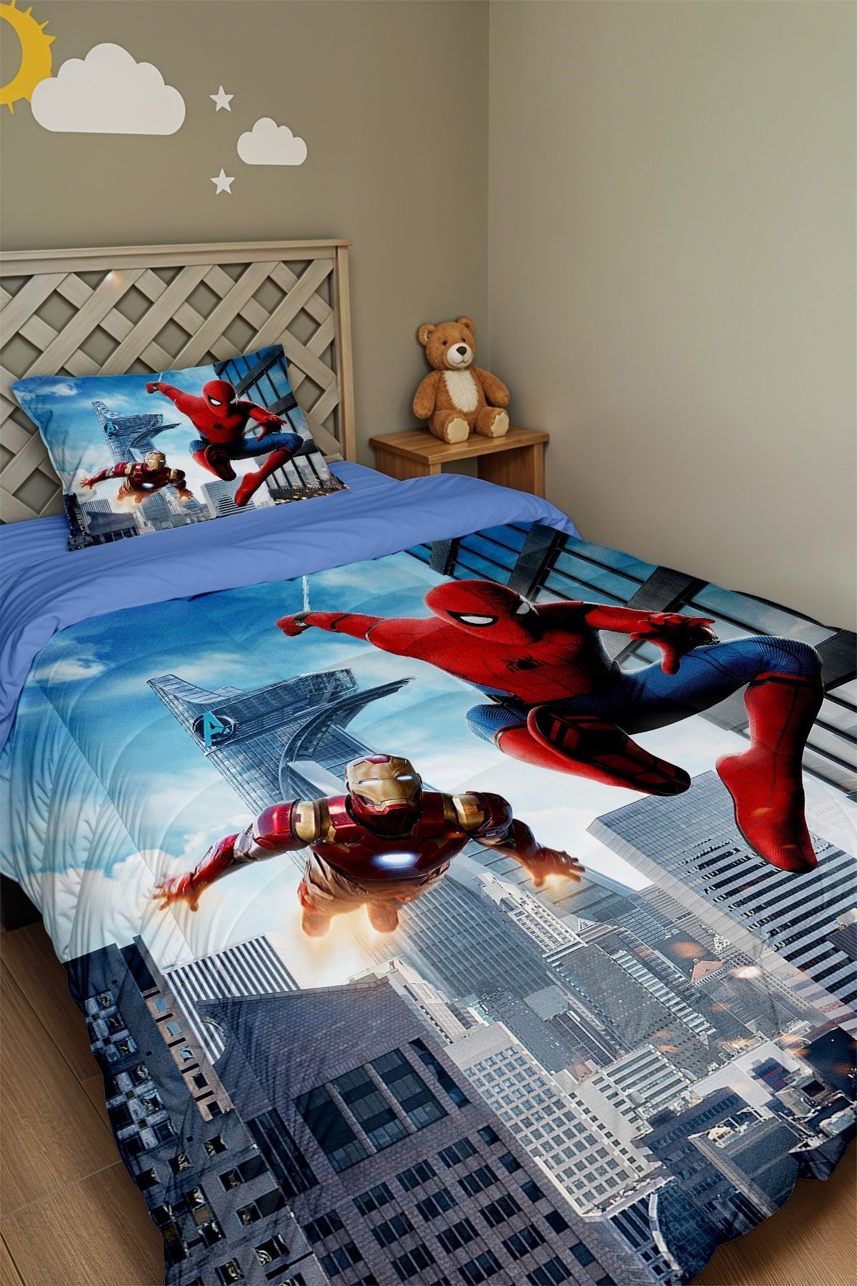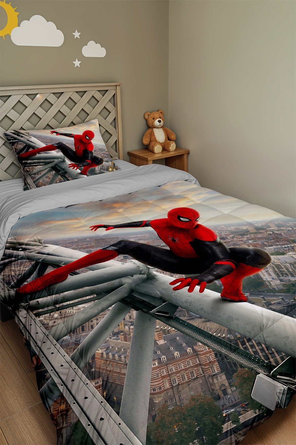 Demir Adam Ve Örümcek Desenli Tek Kişilik Yorgan ve Yastık Kılıfı