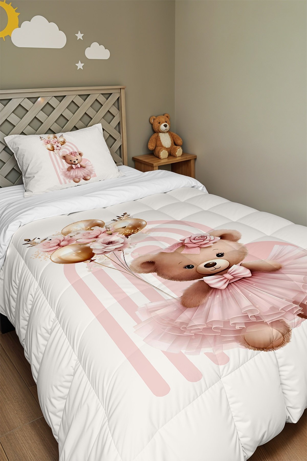 Balerin Yavru Ayıcık Desenli Tek Kişilik Yorgan ve Yastık Kılıfı