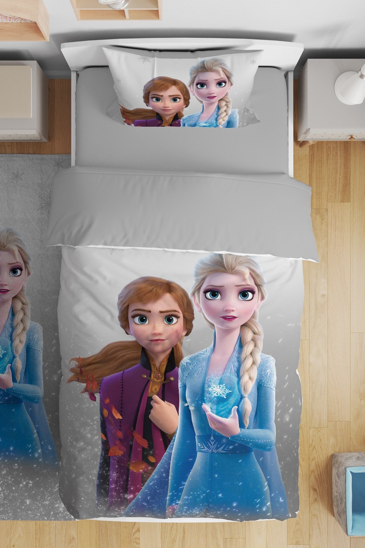 Gri Elsa ve Anna Desenli Tek Kişilik Bebek Çocuk Nevresim Takımı