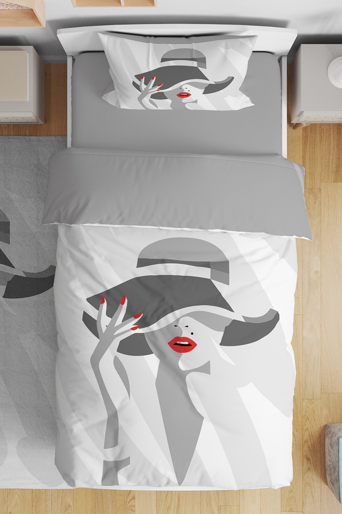 Gri Kadın Silüeti Desenli Tek Kişilik Bebek Çocuk Nevresim Seti