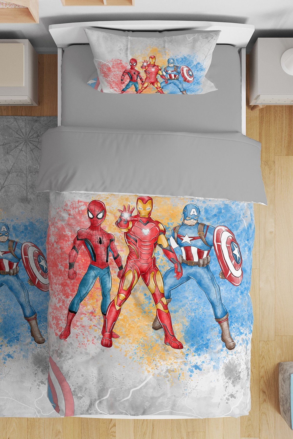 Gri Süper Kahramanlar Desenli Tek Kişilik Bebek Çocuk Nevresim Seti