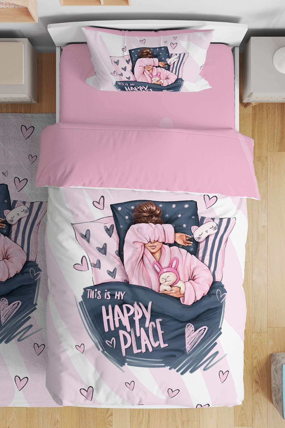 Happy Place Desenli Tek Kişilik Bebek Çocuk Nevresim Seti