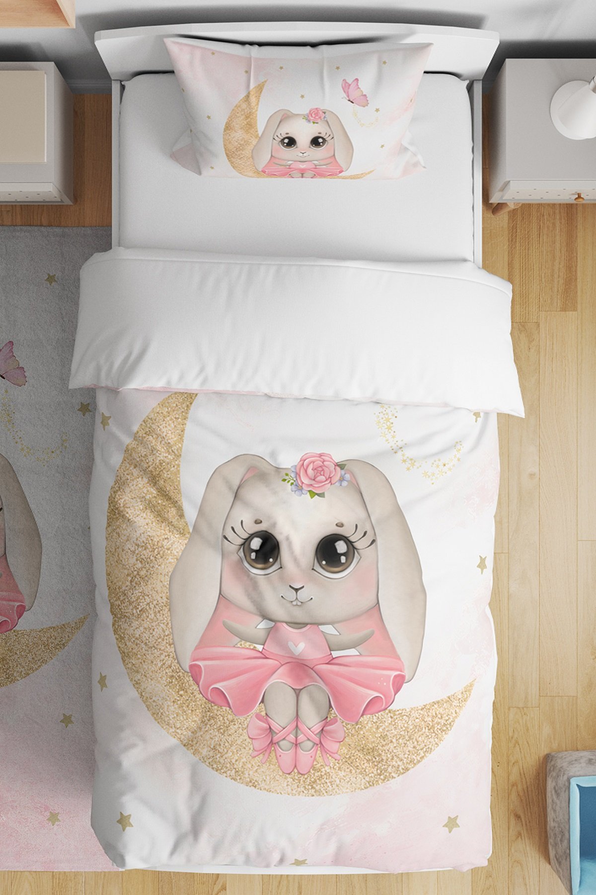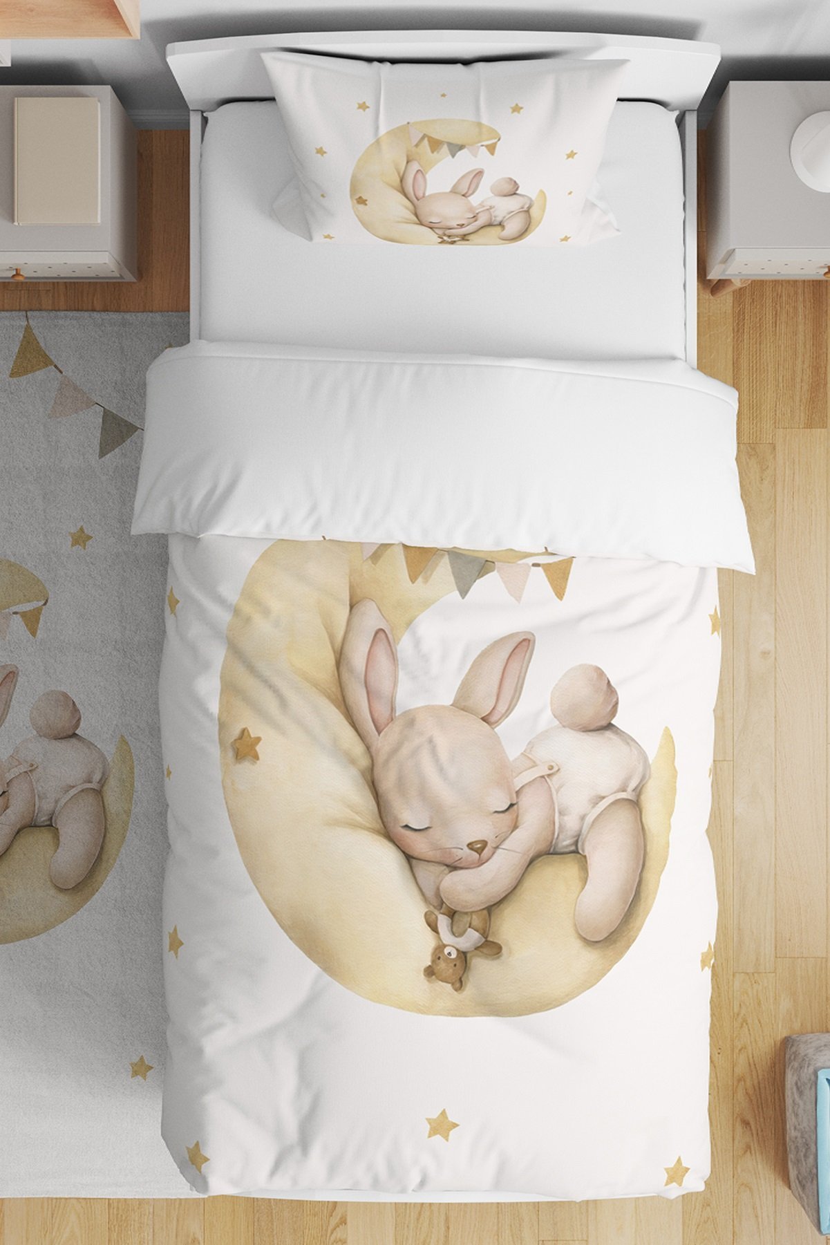 Ayda Uyuyan Tavşan Desenli Tek Kişilik Bebek Çocuk Nevresim Takımı