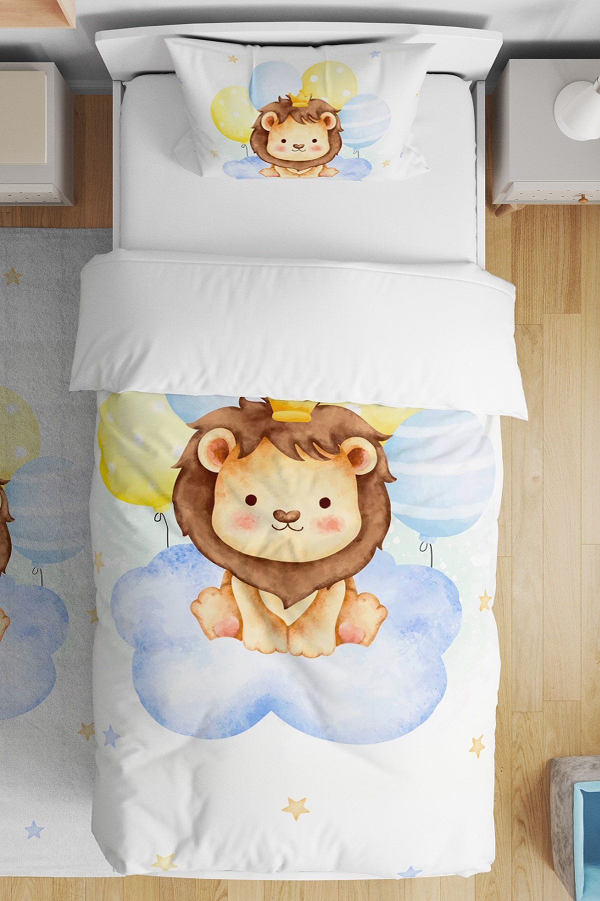 Balonlu Aslan Desenli Tek Kişilik Bebek Çocuk Nevresim Takımı