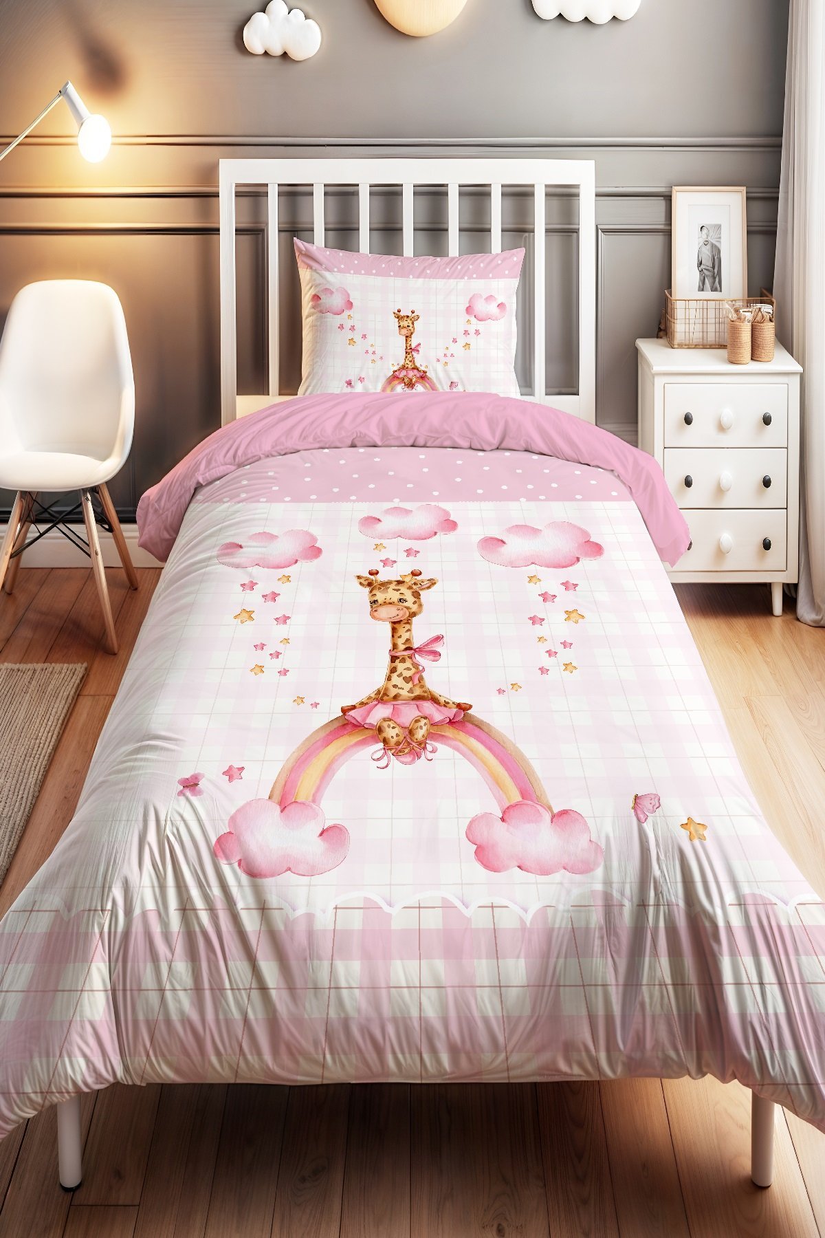 Balerin Zürafa Desenli Tek Kişilik Bebek Çocuk Nevresim Seti