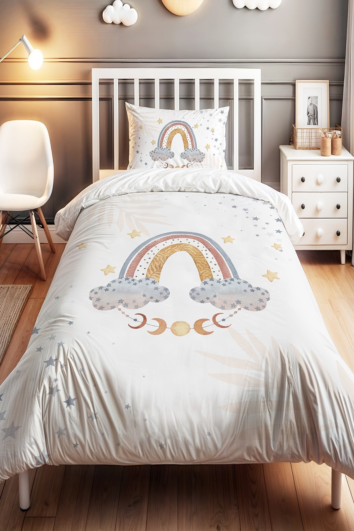 Aydedeli Gökkuşağı Desenli Tek Kişilik Bebek Çocuk Nevresim Seti