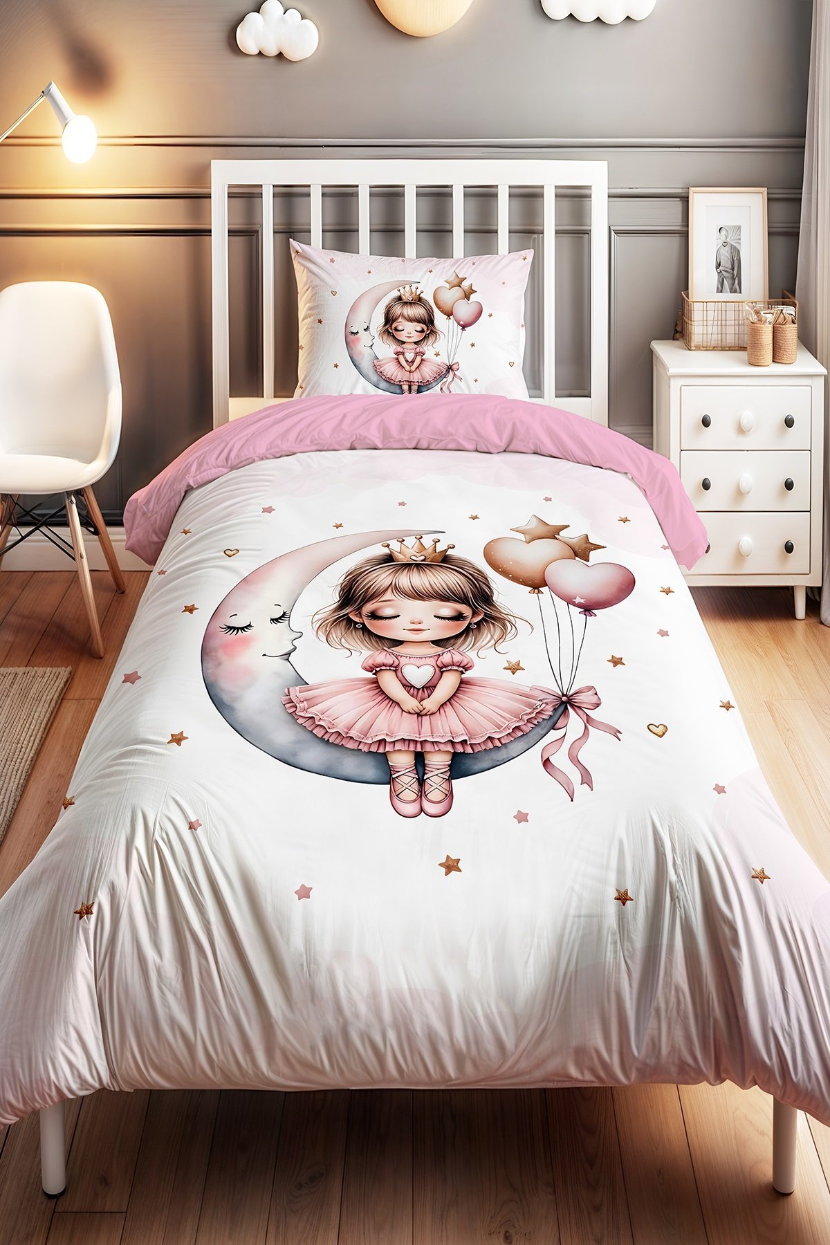 Aydaki Sevimli Prenses Desenli Tek Kişilik Bebek Çocuk Nevresim Seti