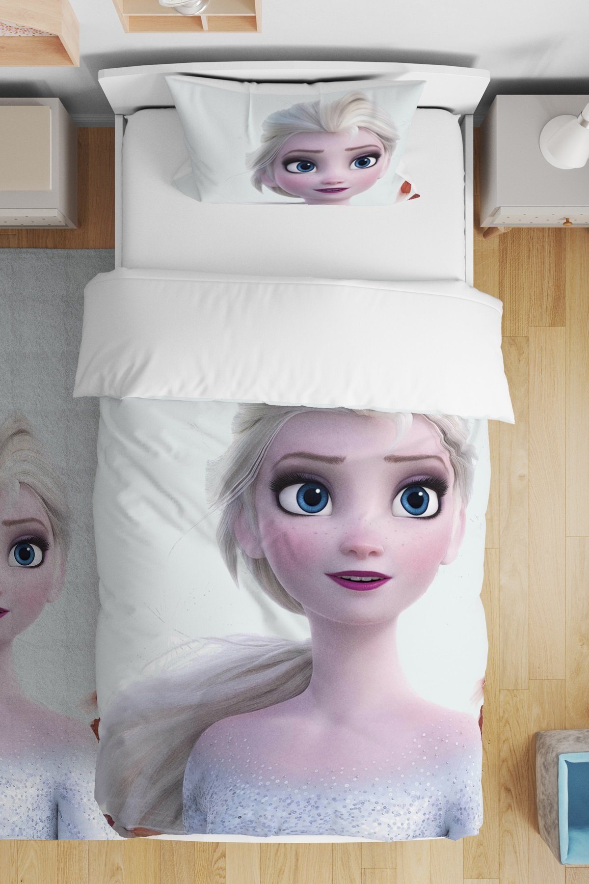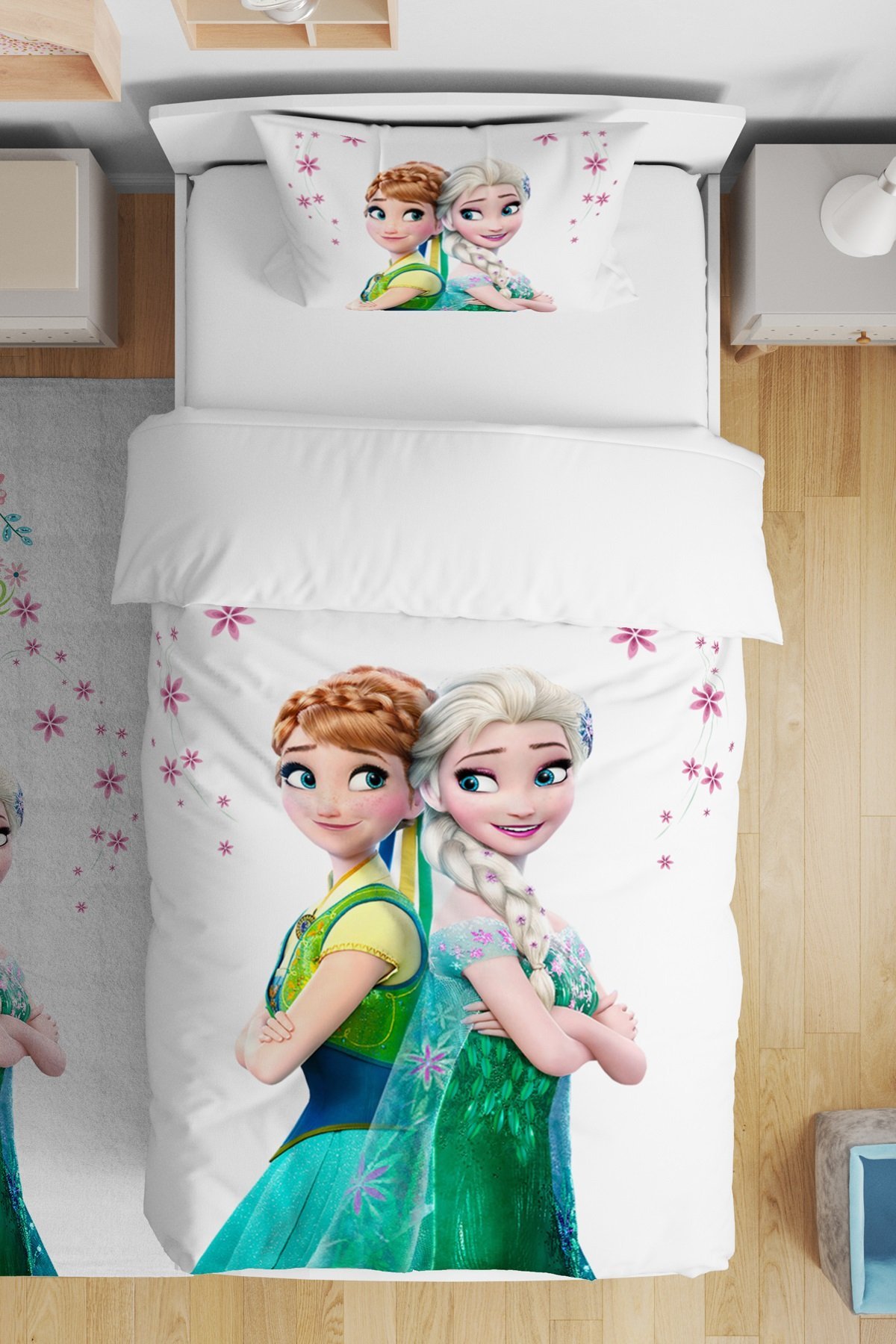 Beyaz Elsa ve Anna Desenli Tek Kişilik Bebek Çocuk Nevresim Takımı