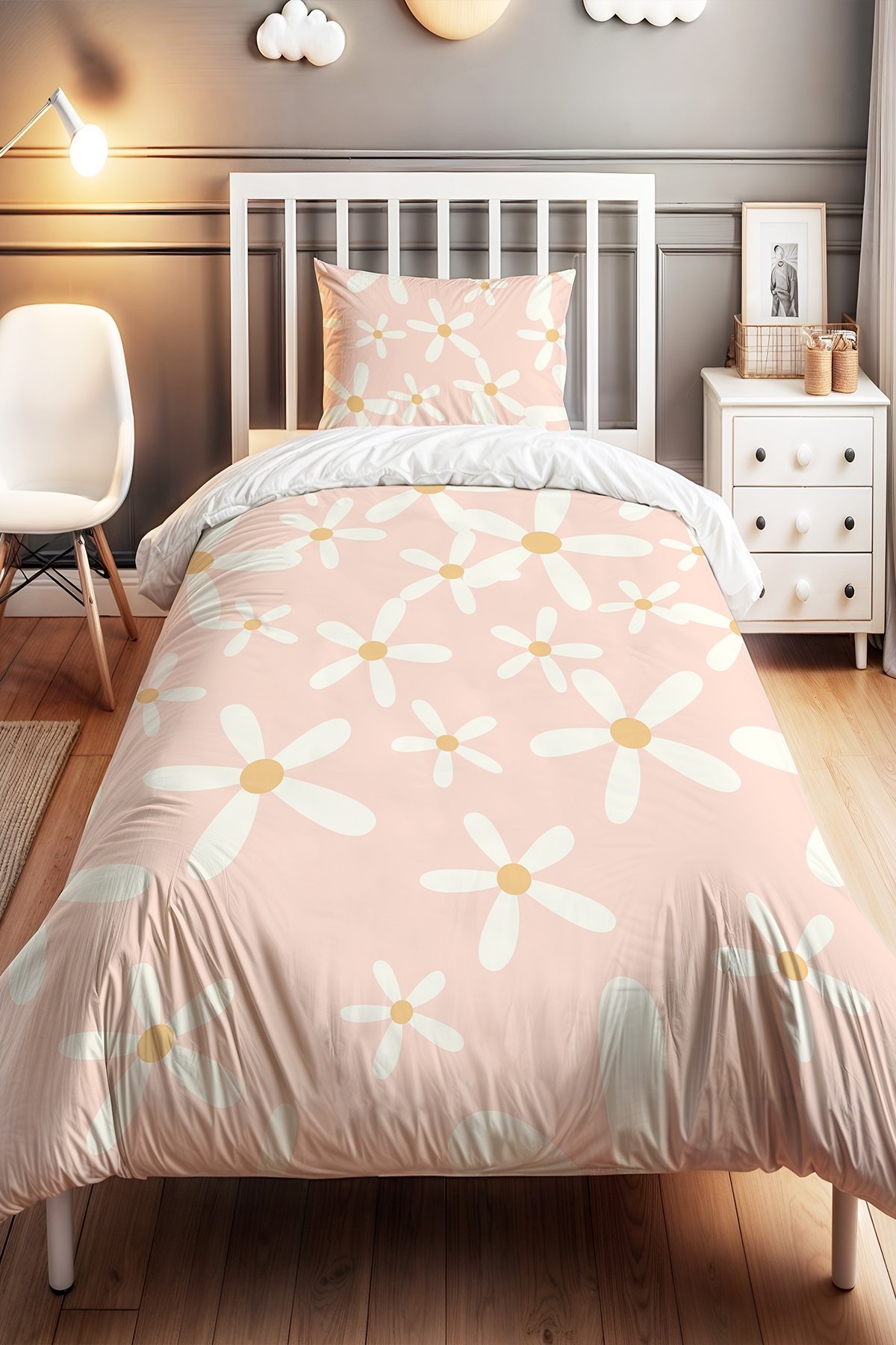 Beyaz Papatyalar Desenli Tek Kişilik Bebek Çocuk Nevresim Seti