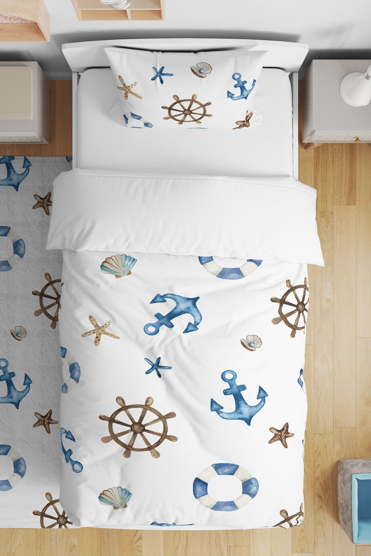 Çapa Dümen Desenli Tek Kişilik Bebek Çocuk Nevresim Takımı