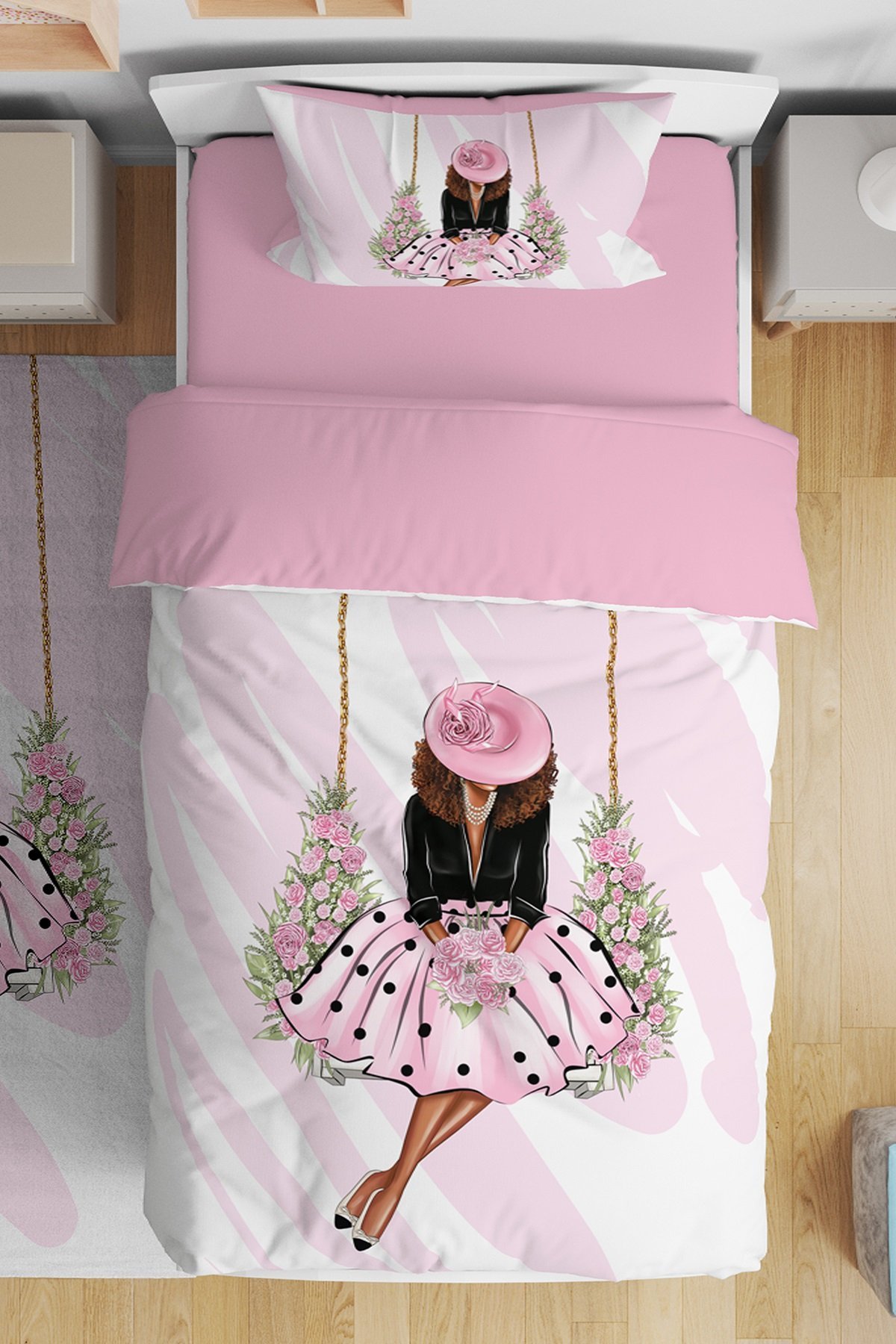 Çiçekli Salıncak Desenli Tek Kişilik Bebek Çocuk Nevresim Seti