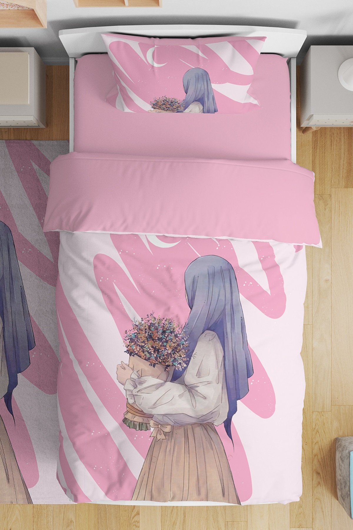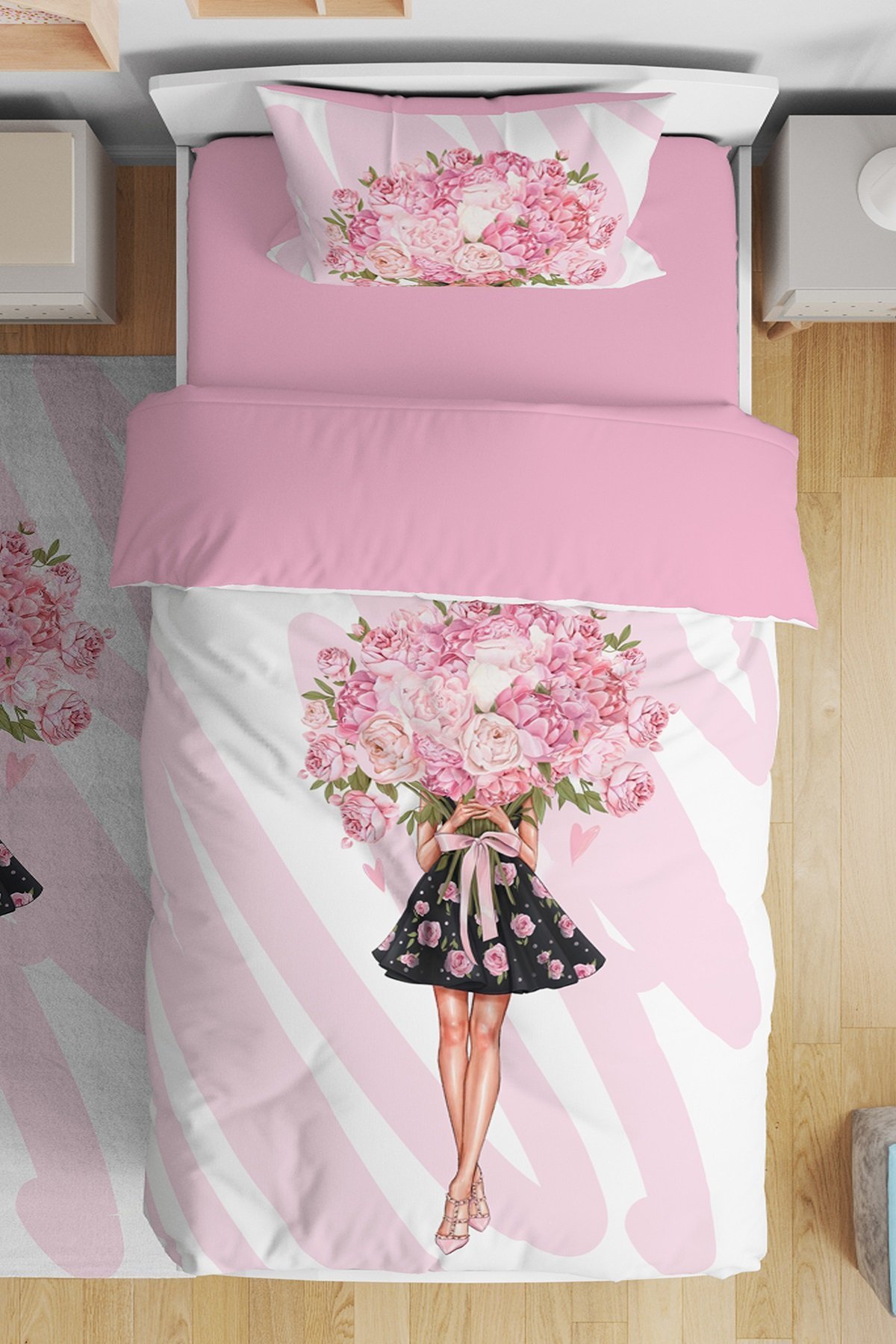 Büyük Gül Buketli Kız Desenli Tek Kişilik Bebek Çocuk Nevresim Seti