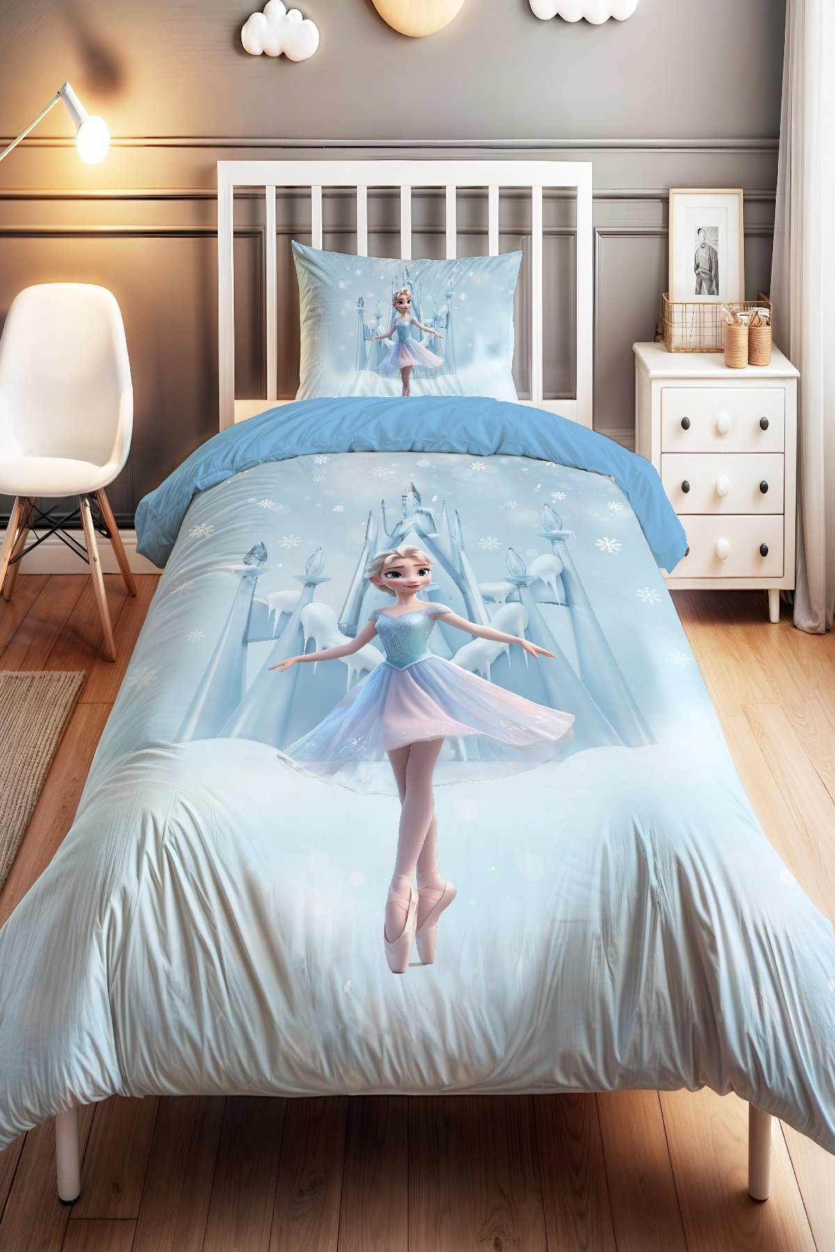 Buz Kalesi Balerin Elsa Desenli Tek Kişilik Bebek Çocuk Nevresim Seti