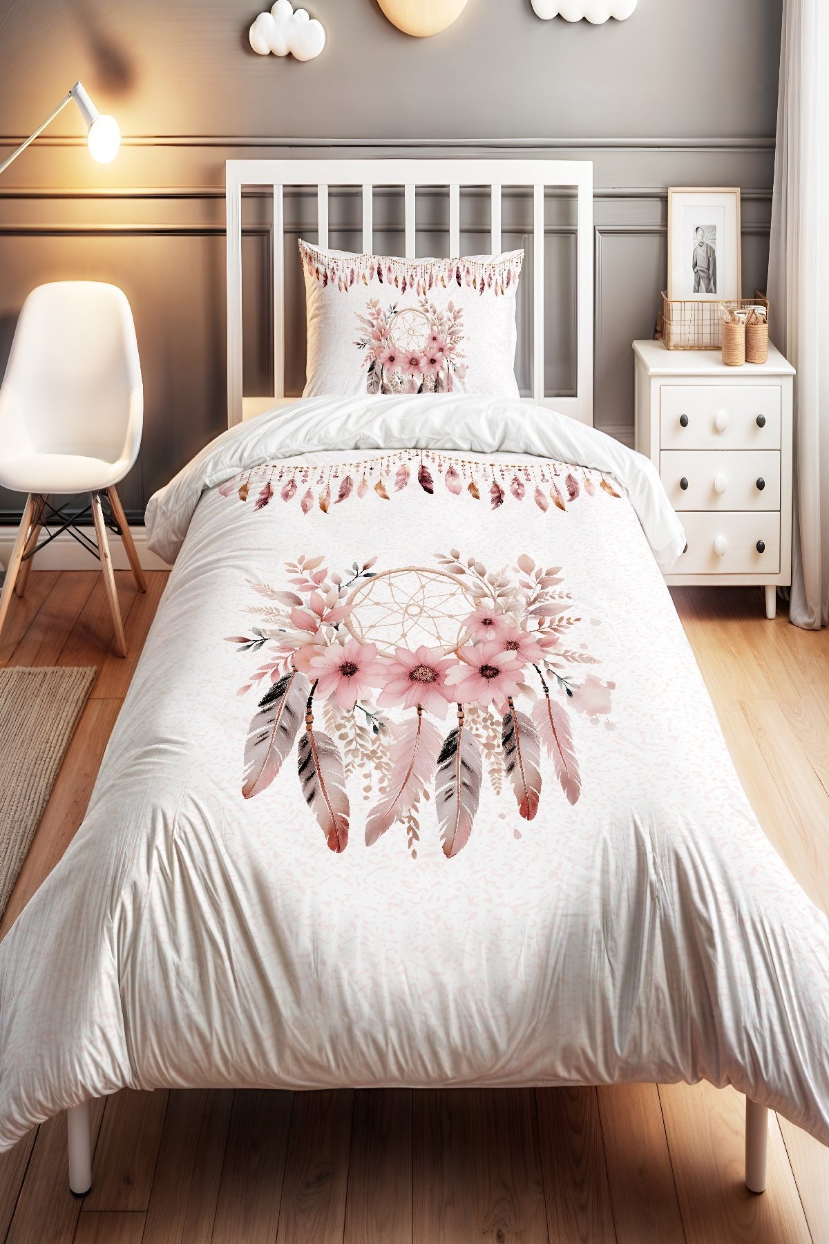 Çiçekli DüşKapanı Desenli Tek Kişilik Bebek Çocuk Nevresim Seti