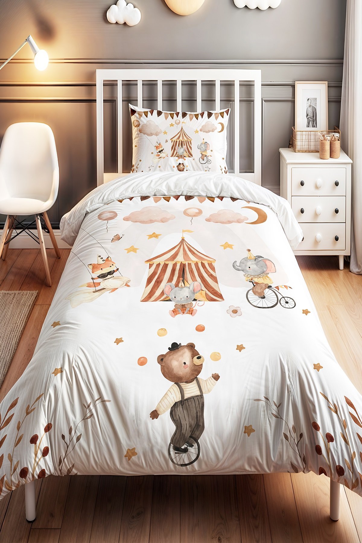 Çadırlı Sirk Dostları Desenli Tek Kişilik Bebek Çocuk Nevresim Seti
