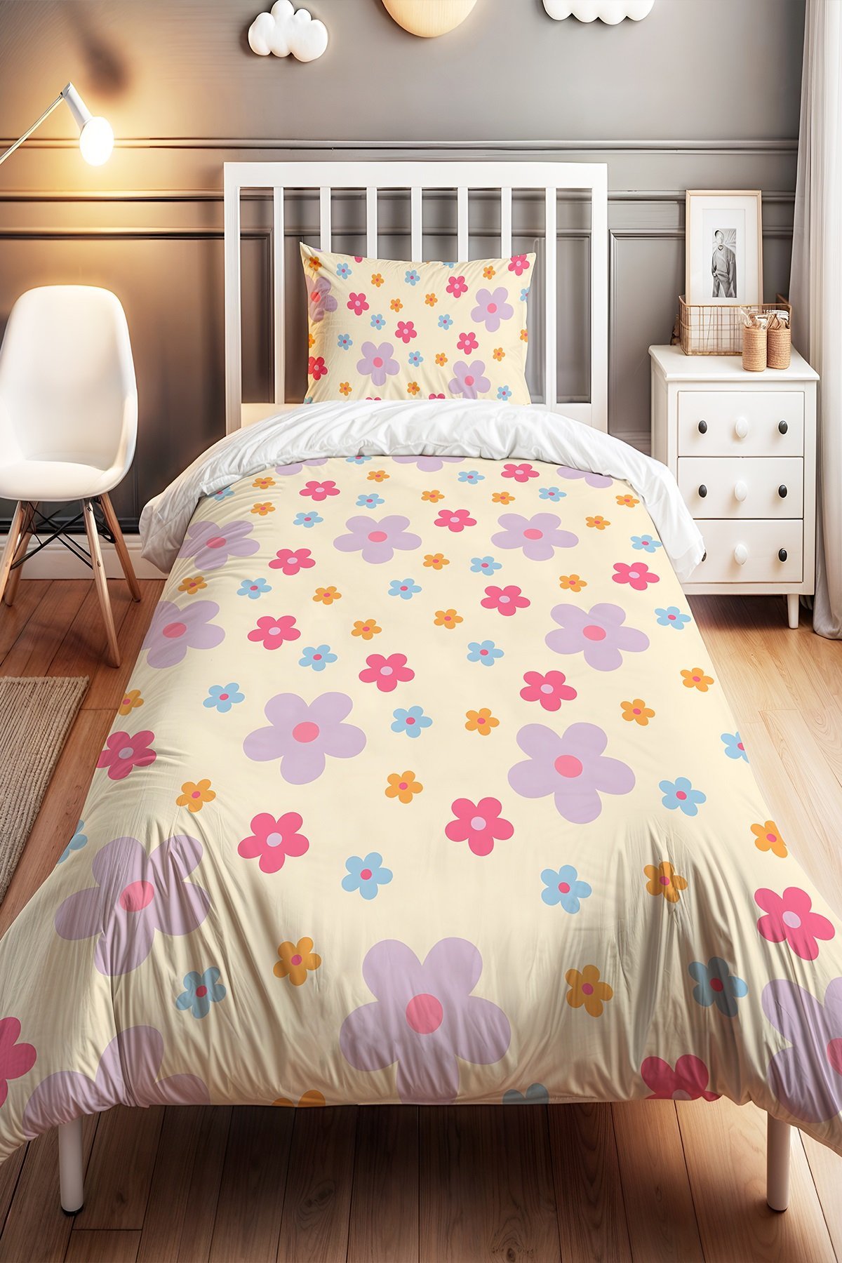 Çiçek Bahçesi Desenli Tek Kişilik Bebek Çocuk Nevresim Seti