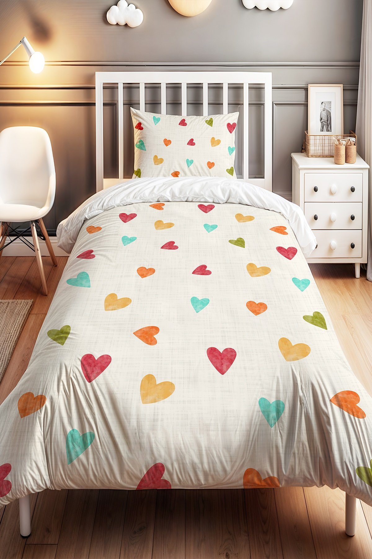 Canlı Kalpler Desenli Tek Kişilik Bebek Çocuk Nevresim Seti