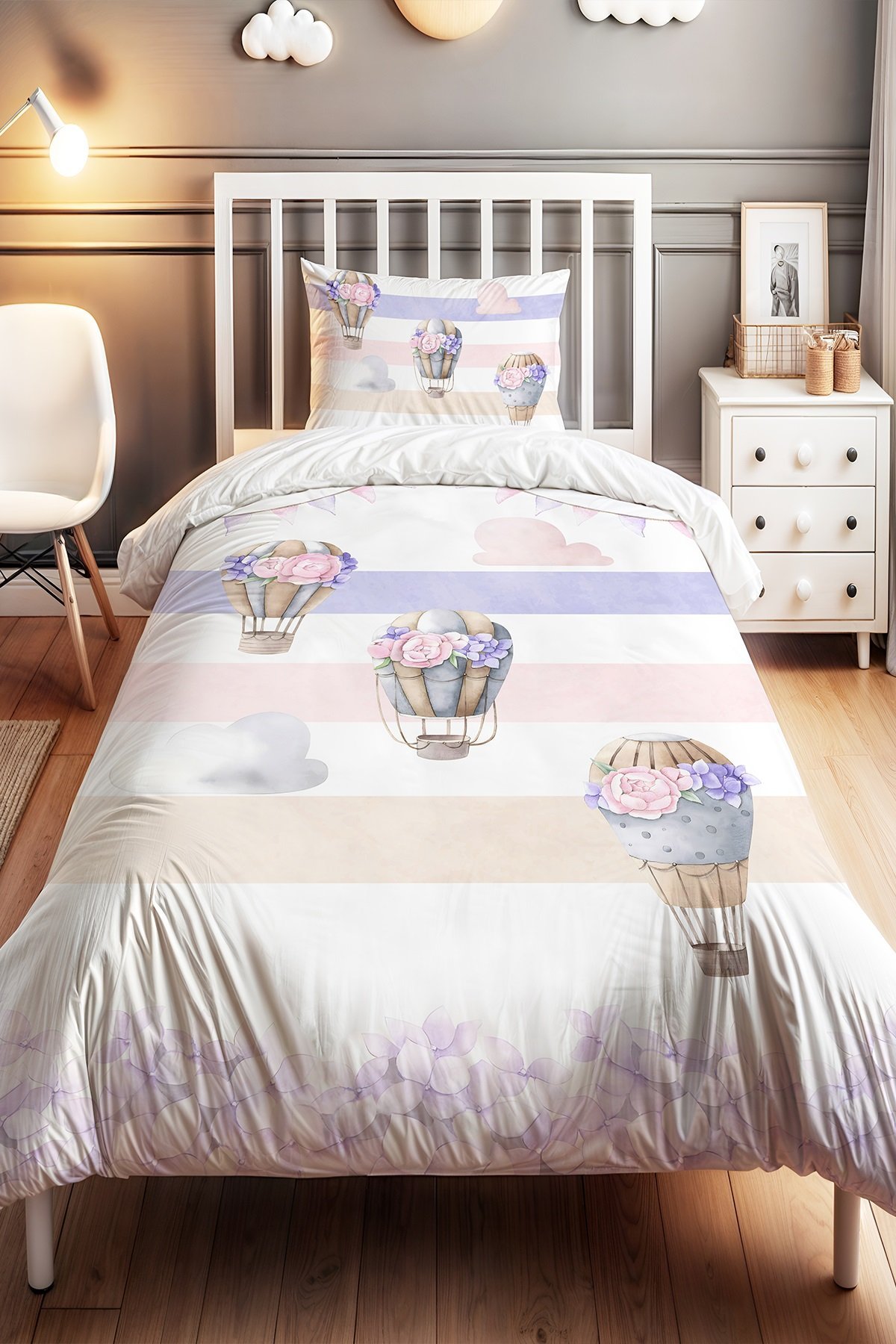 Çiçekli Uçan Balon Desenli Tek Kişilik Bebek Çocuk Nevresim Seti