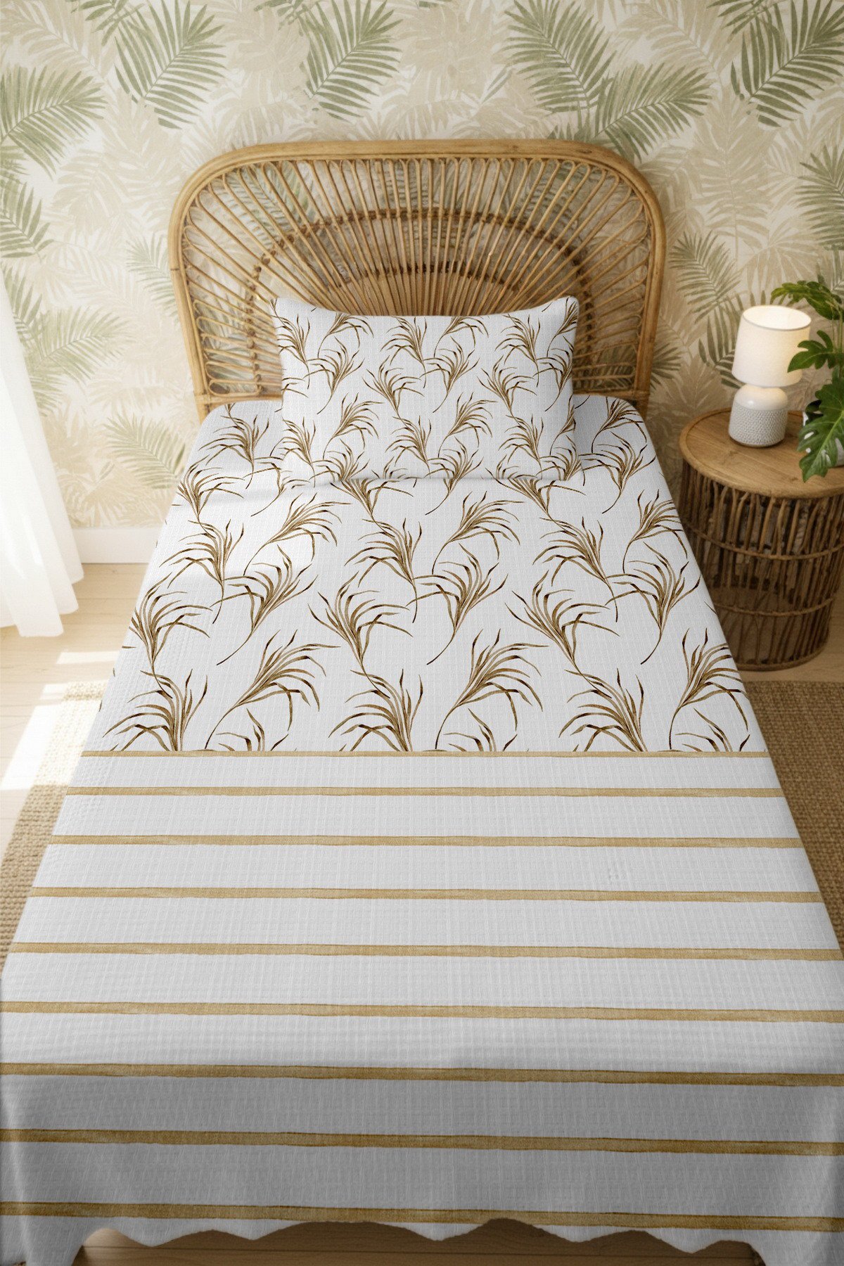 %100 Pamuk Rüzgarın Bohemi Desenli Tek Kişilik Pike Seti