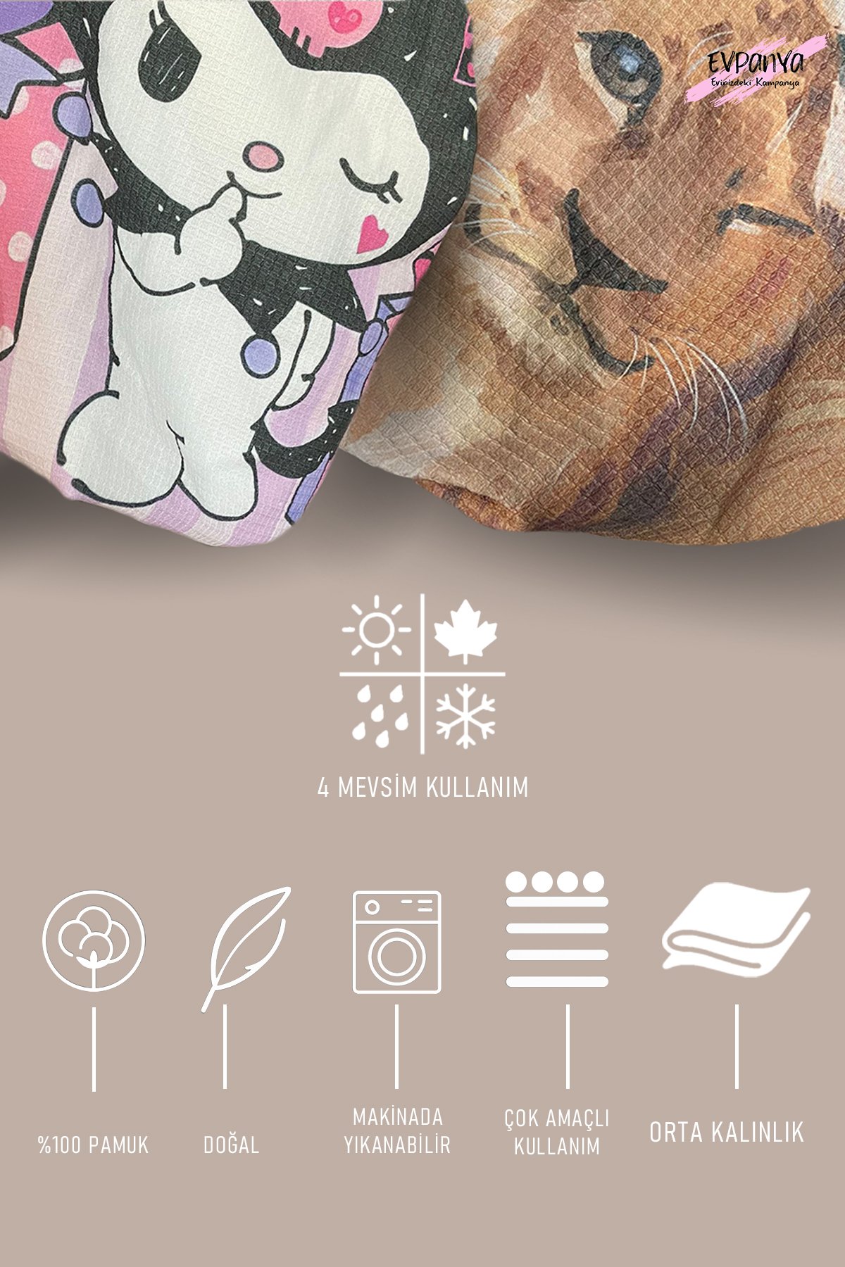 Pamuk yapısından dolayı ürünümüzdeki desenlerimiz yüzde 10’luk bir renk farkı olabilir.30 derecede yıkanabilir, Tersten ılık ütü yapılabilir.