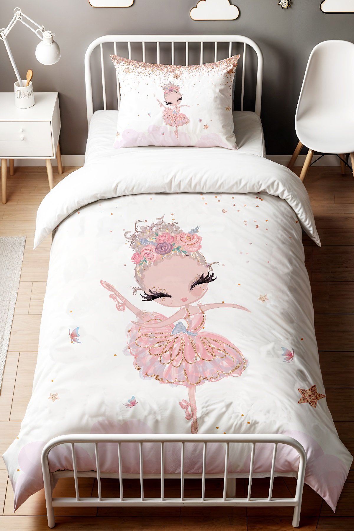 Altın Elbiseli Balerin Desenli Tek Kişilik Bebek Çocuk Nevresim Seti