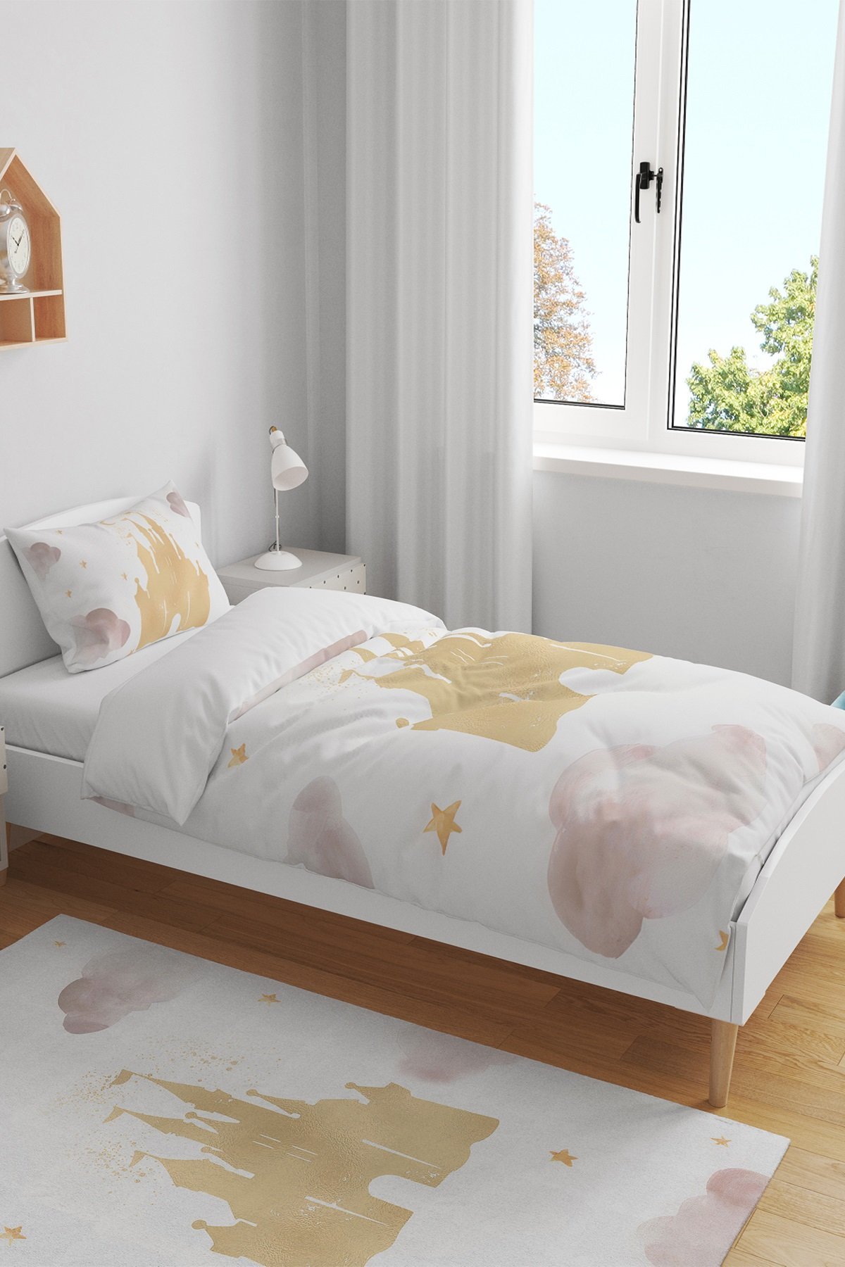 Altın Rüyalar Kalesi Desenli Tek Kişilik Bebek Çocuk Nevresim Takımı