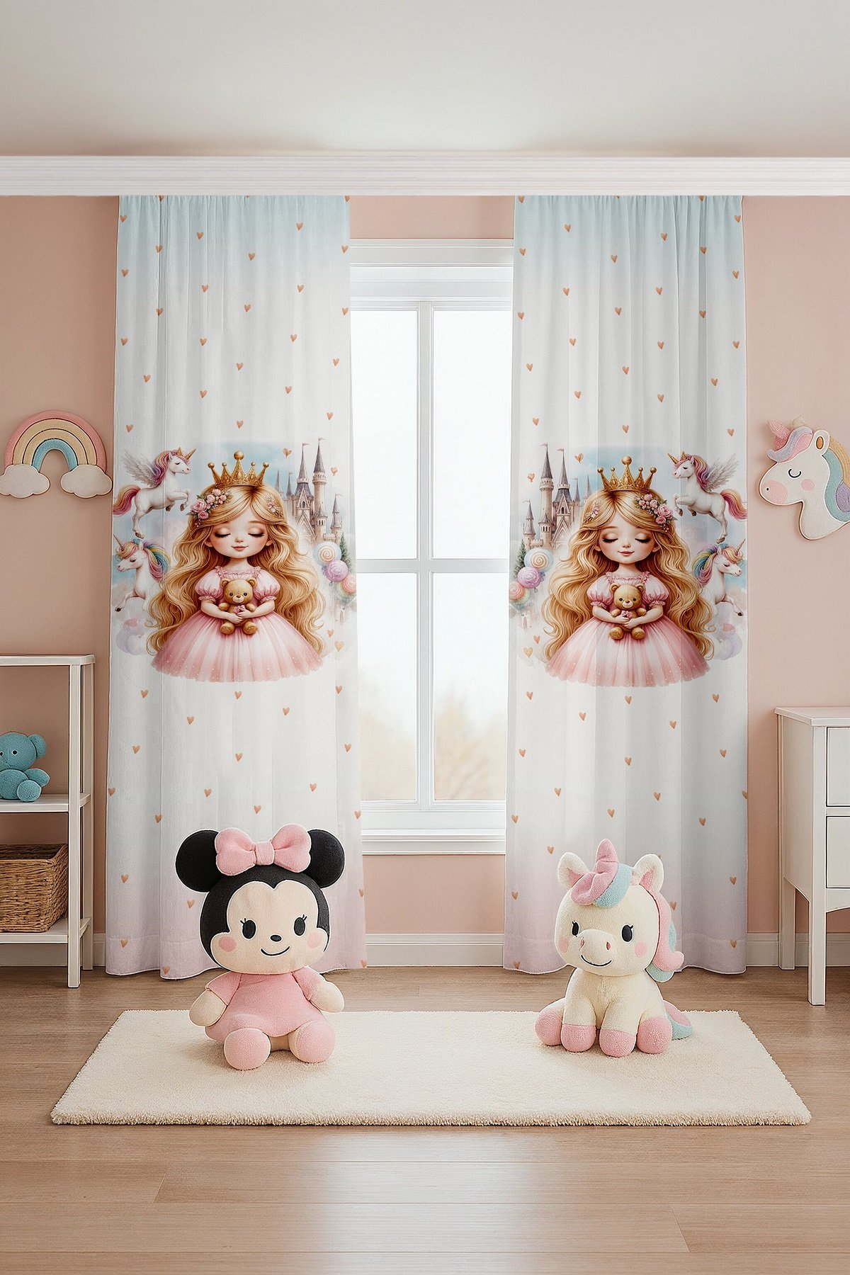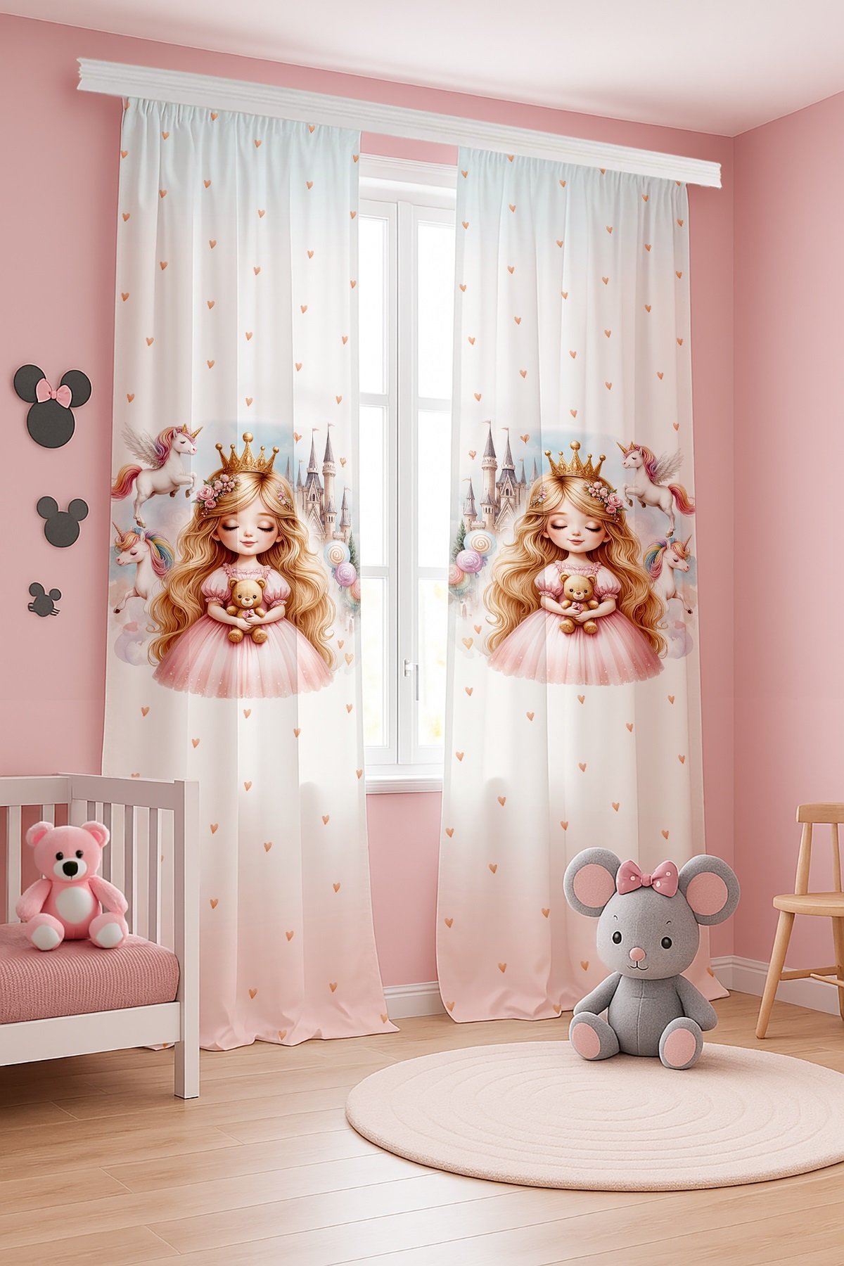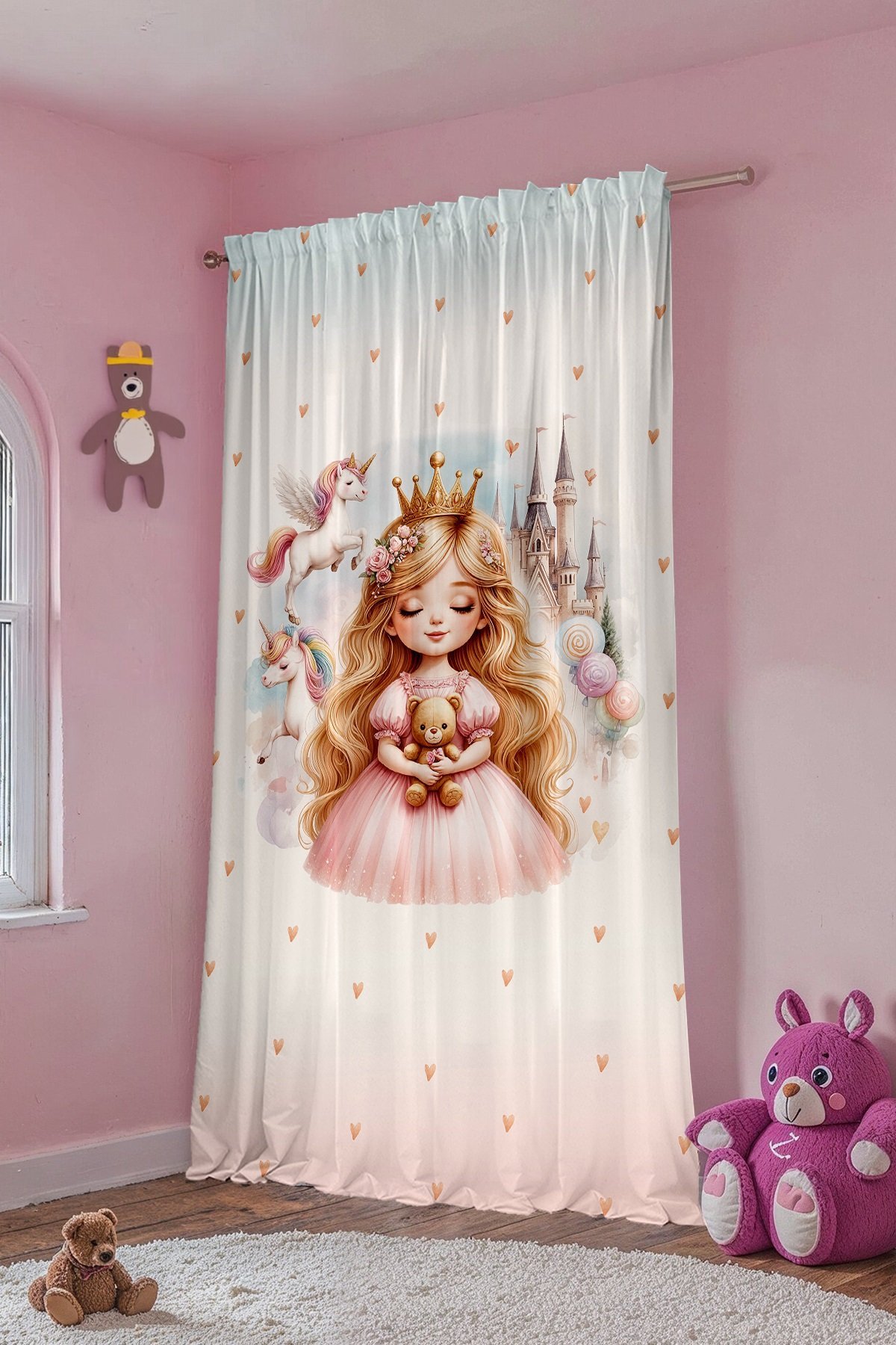 Altın Saçlı Prenses Desenli Çocuk Bebek Odası Fon Perde (Tek Kanat Fiyatlandırma)