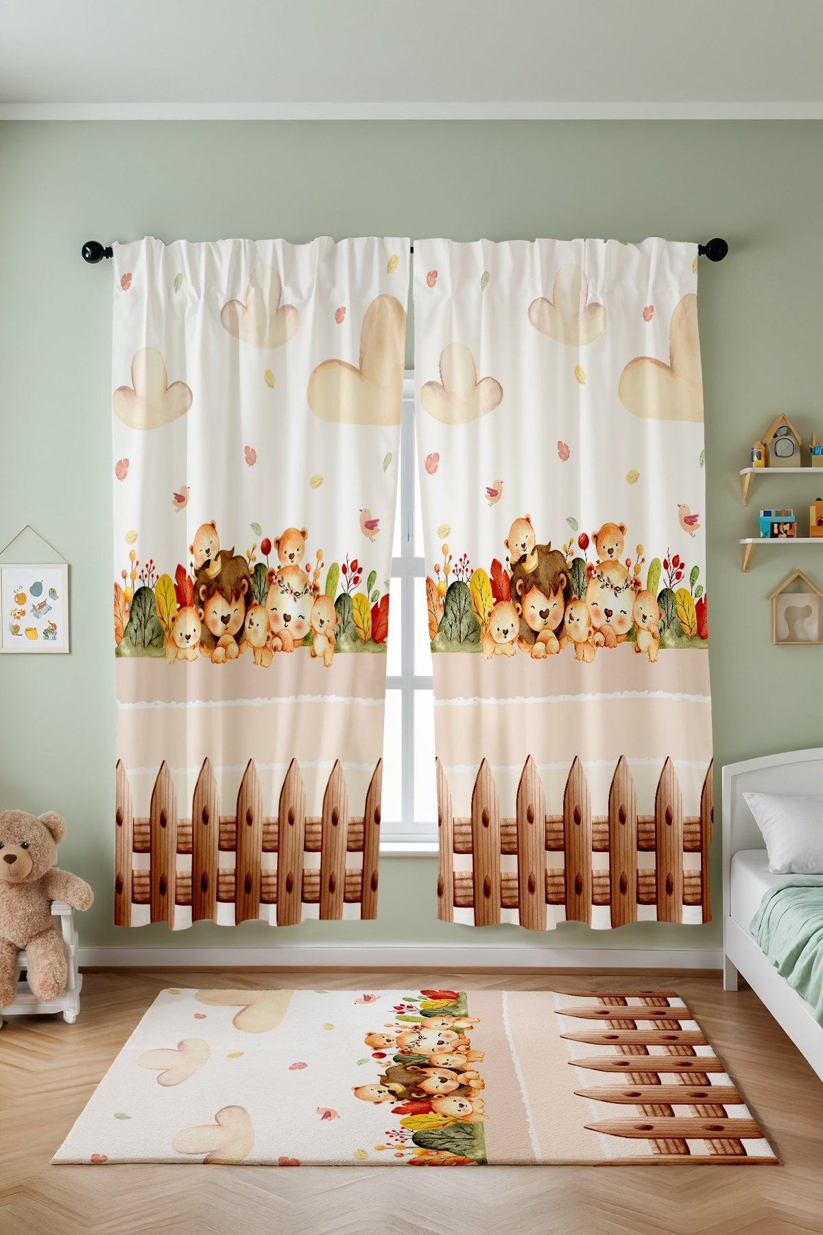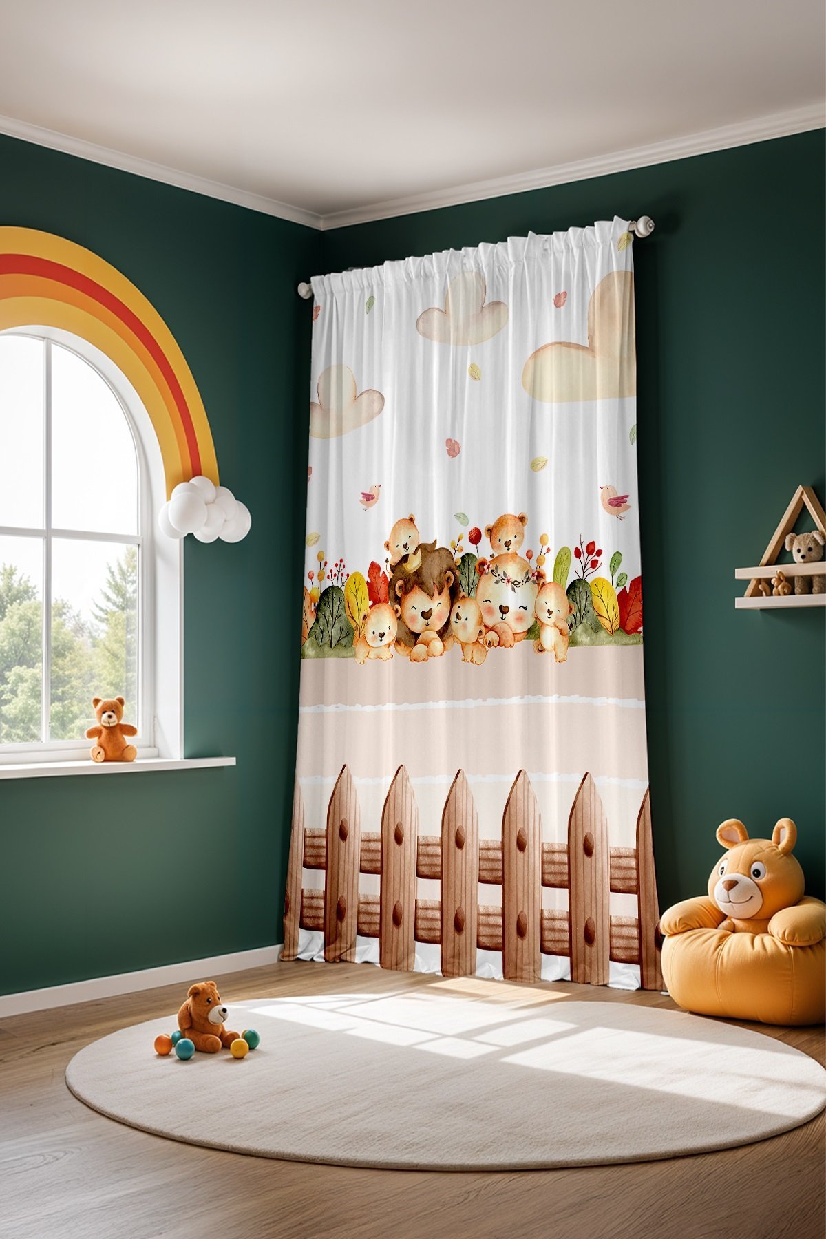 Aslan Ailesi Desenli Çocuk Bebek Odası Fon Perde (Tek Kanat Fiyatlandırma)