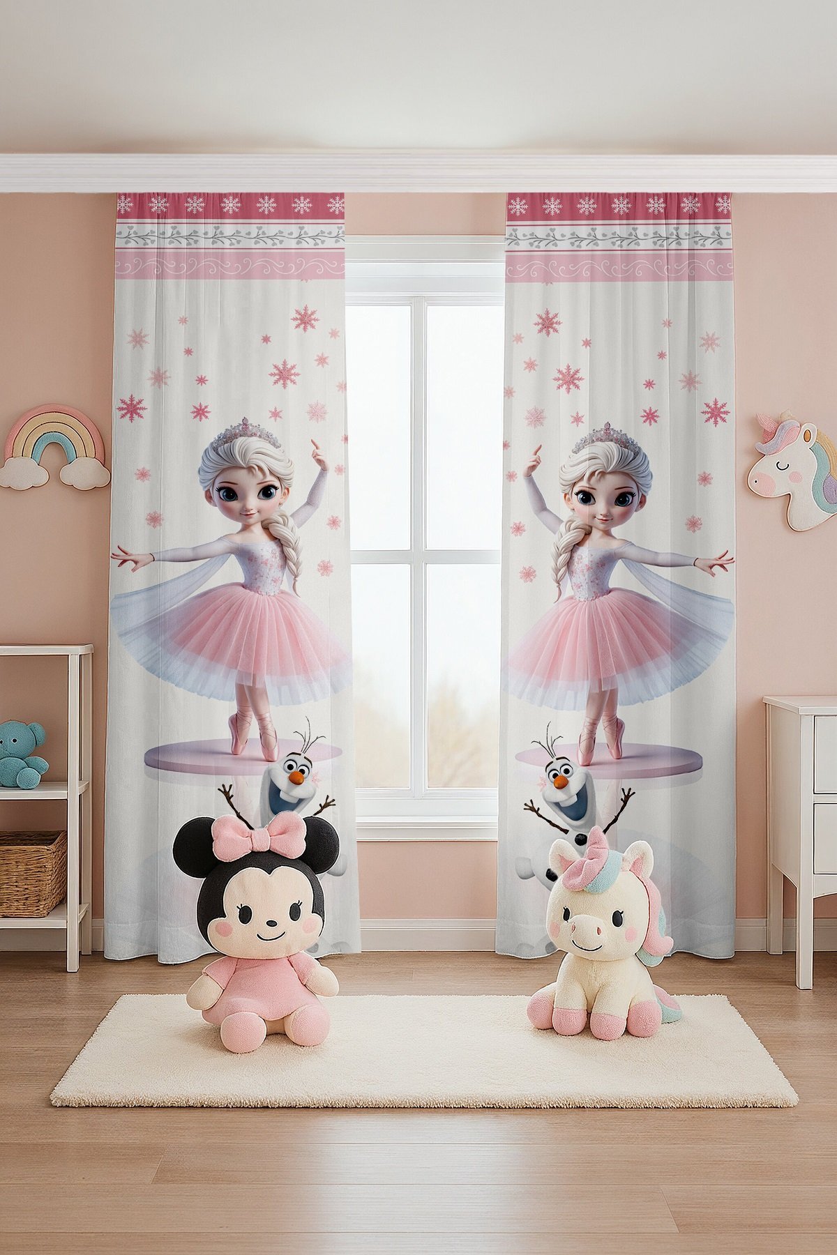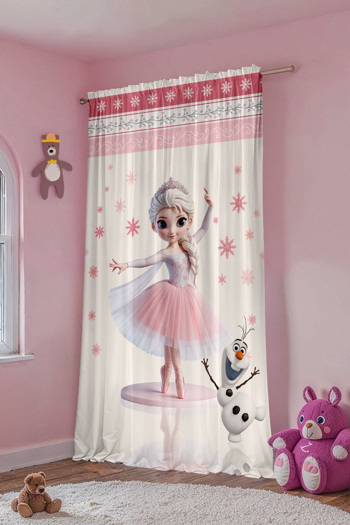 Balerin Prenses Desenli Çocuk Bebek Odası Fon Perde (Tek Kanat Fiyatlandırma)