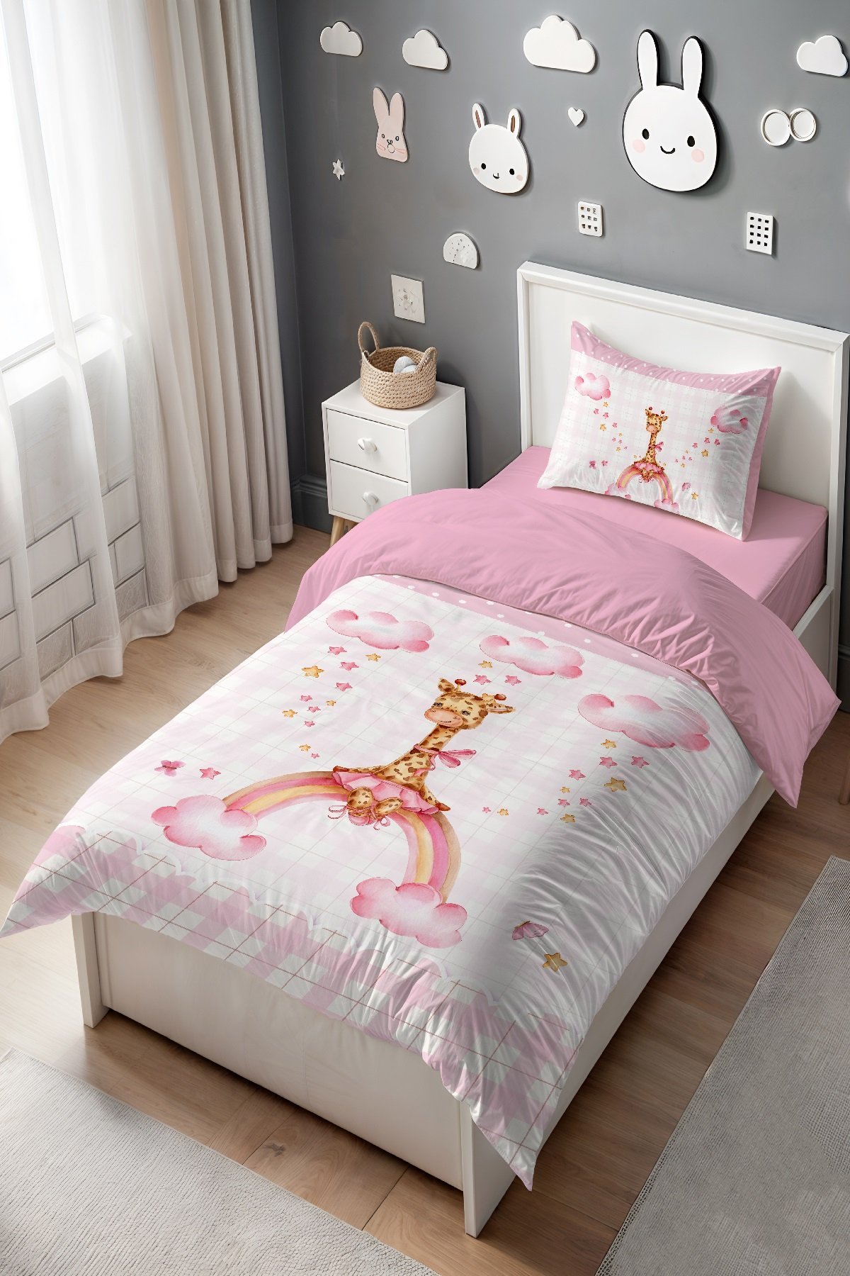 Balerin Zürafa Desenli Tek Kişilik Bebek Çocuk Nevresim Seti