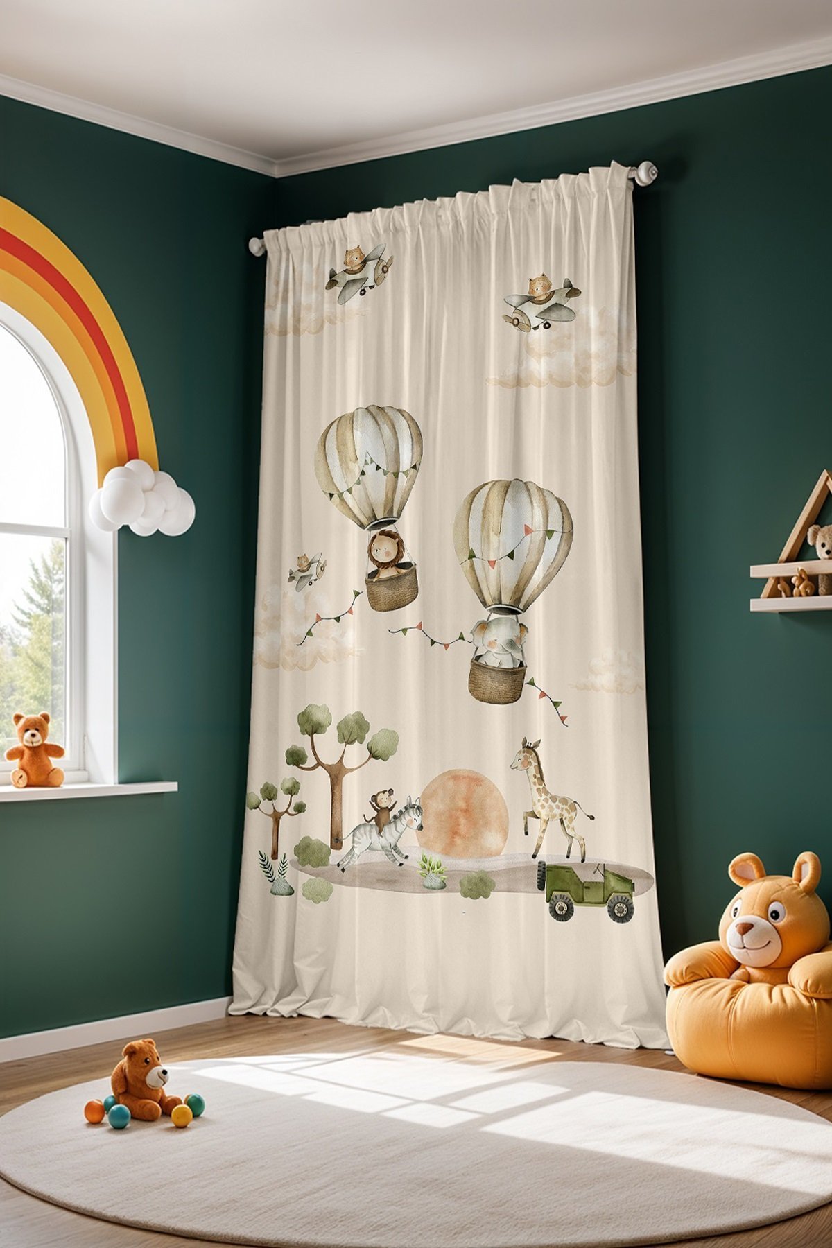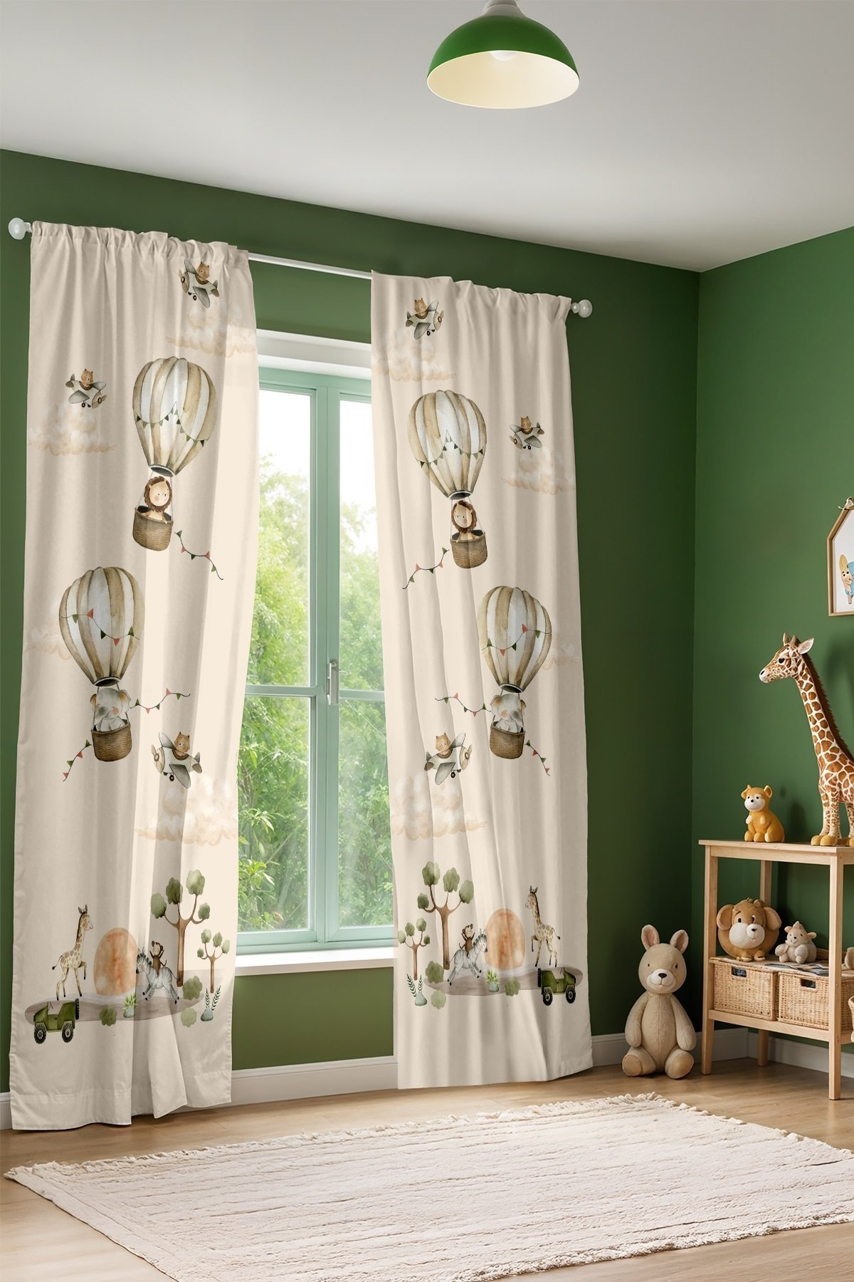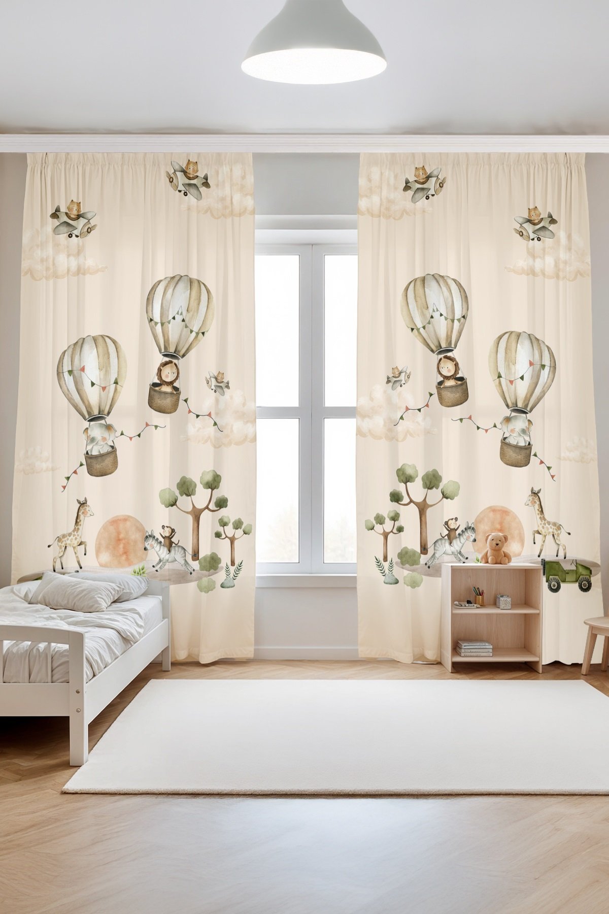 Balonlar ve Safari Desenli Çocuk Bebek Odası Fon Perde (Tek Kanat Fiyatlandırma)