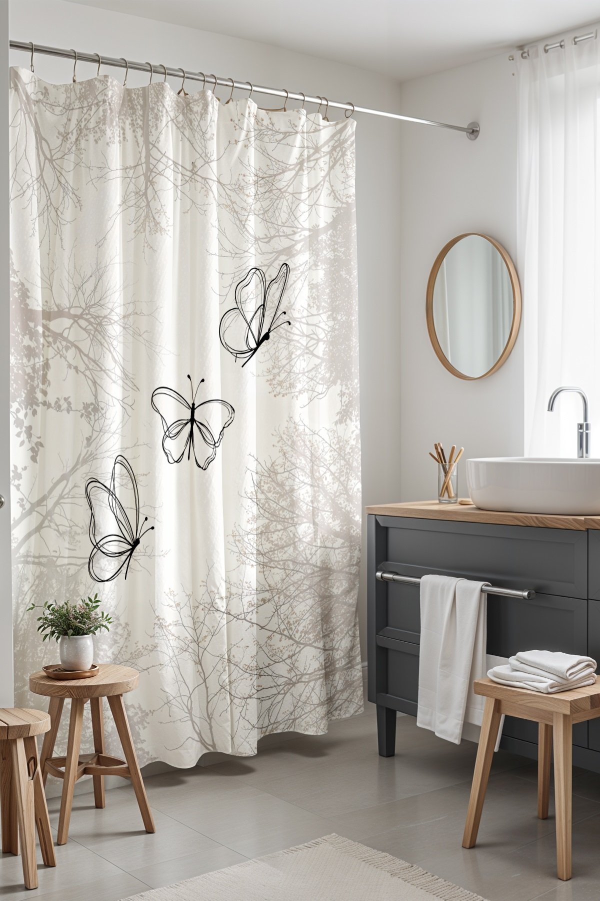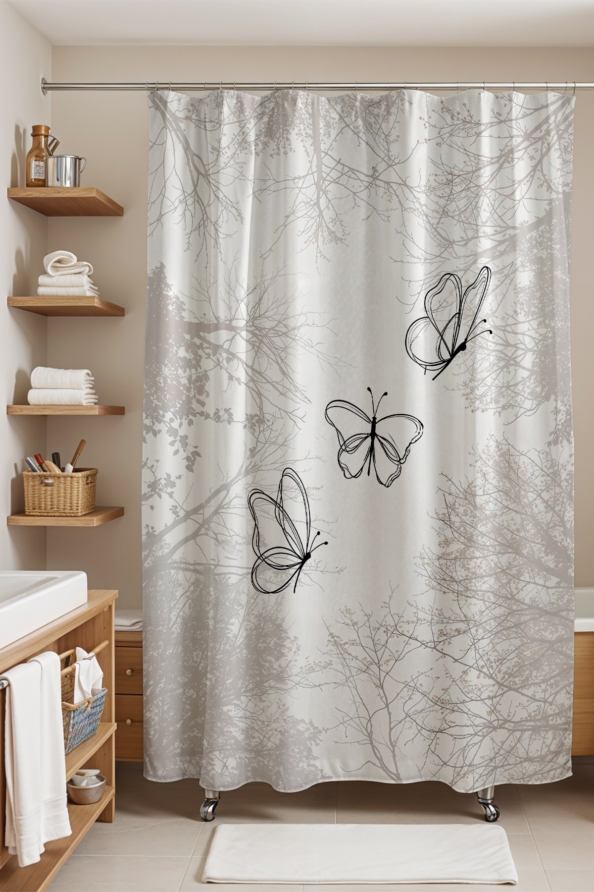 Banyo Perdesi, Gölge Uçuşmaları Desenli Duş Perdesi, Küvet Perdesi 175x200cm