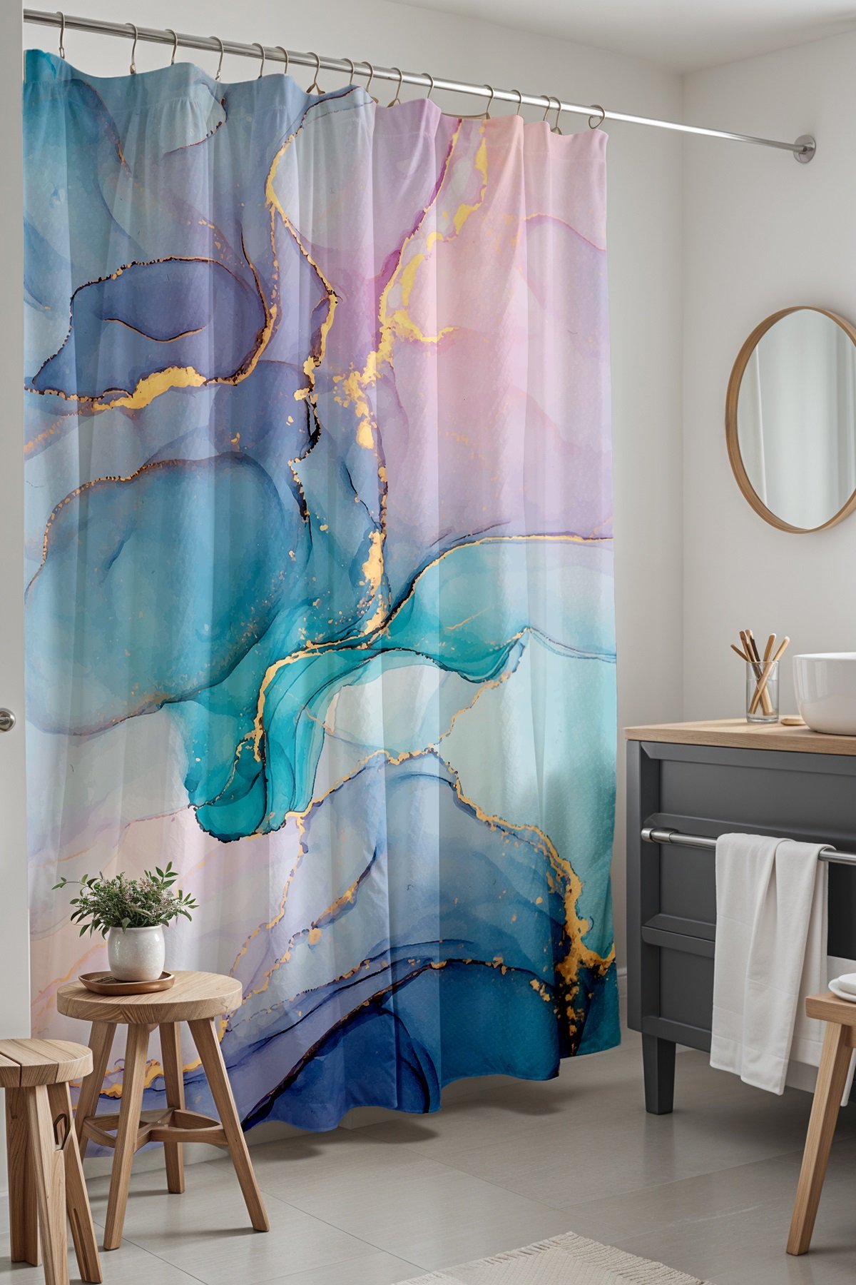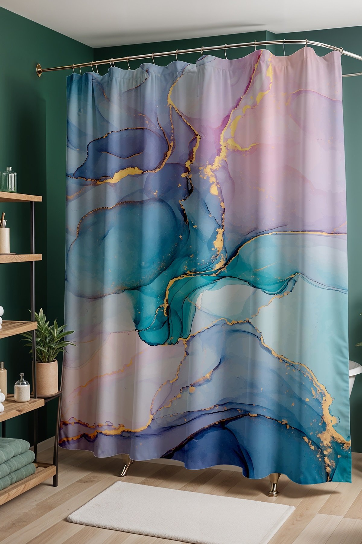 Banyo Perdesi, Opal Altın Karışımı Desenli Duş Perdesi, Küvet Perdesi 175x200cm