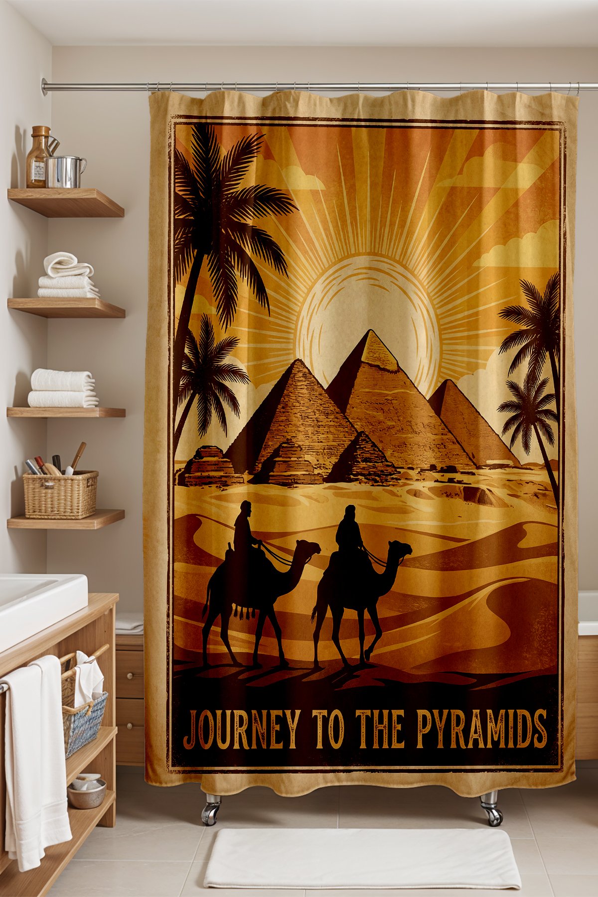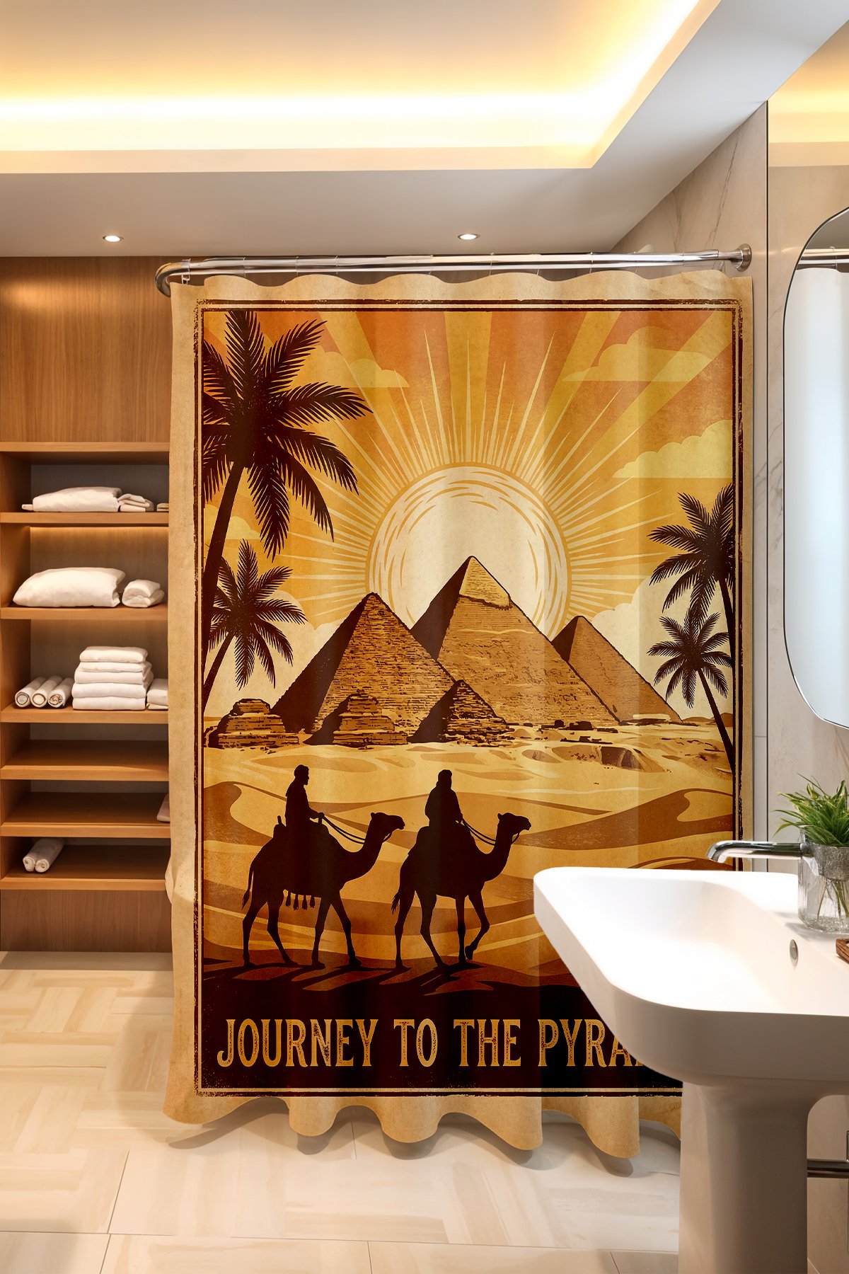 Banyo Perdesi, Piramitlere Yolculuk Desenli Duş Perdesi, Küvet Perdesi 175x200cm