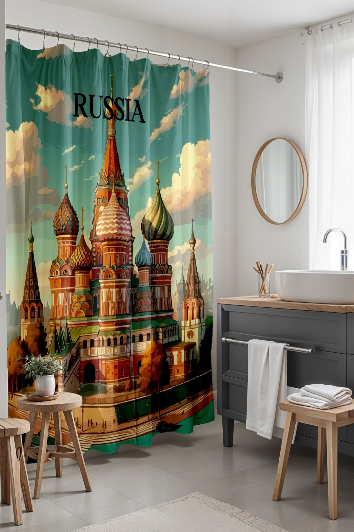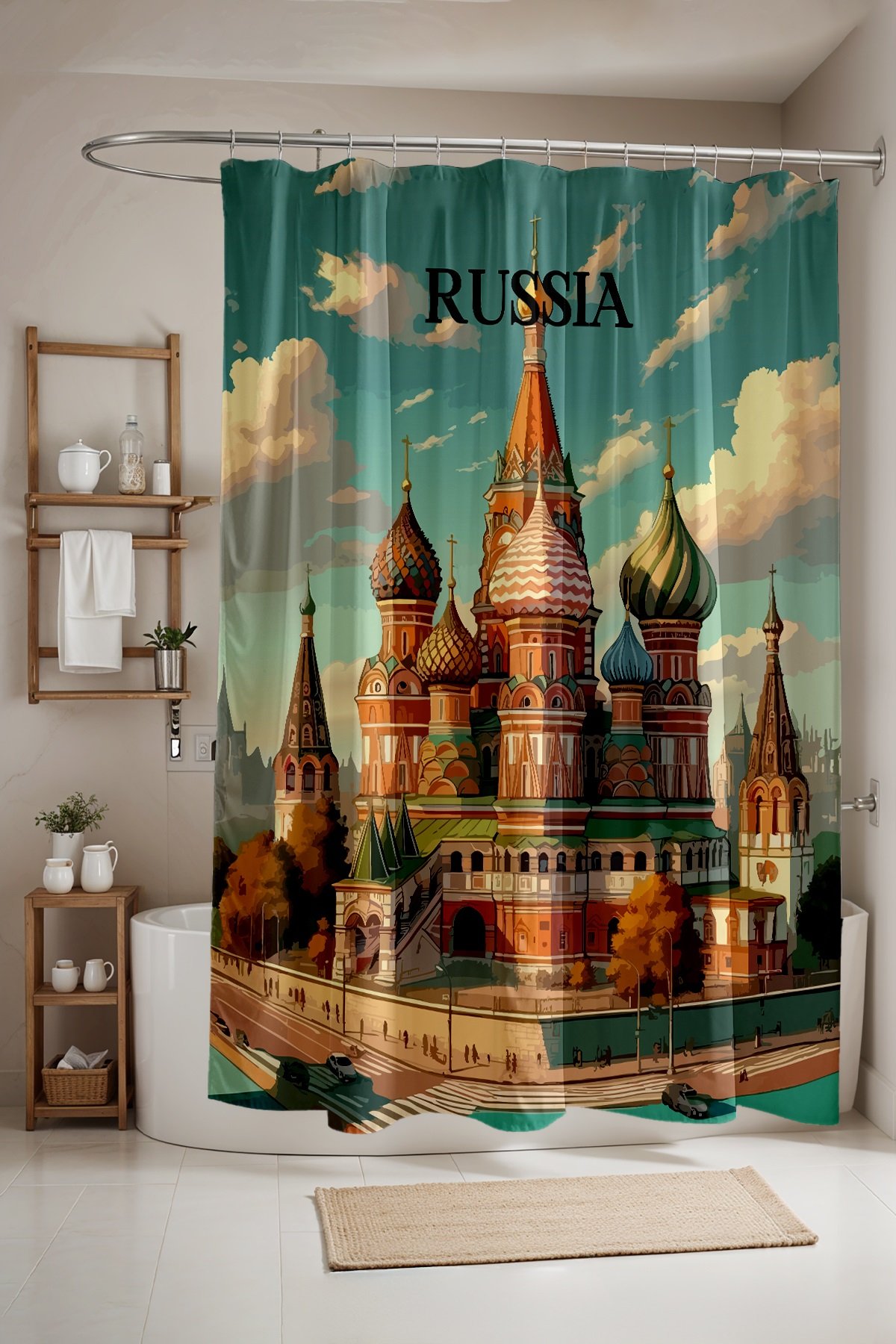 Banyo Perdesi, Rusya Kubbe Senfonisi Desenli Duş Perdesi, Küvet Perdesi 175x200cm