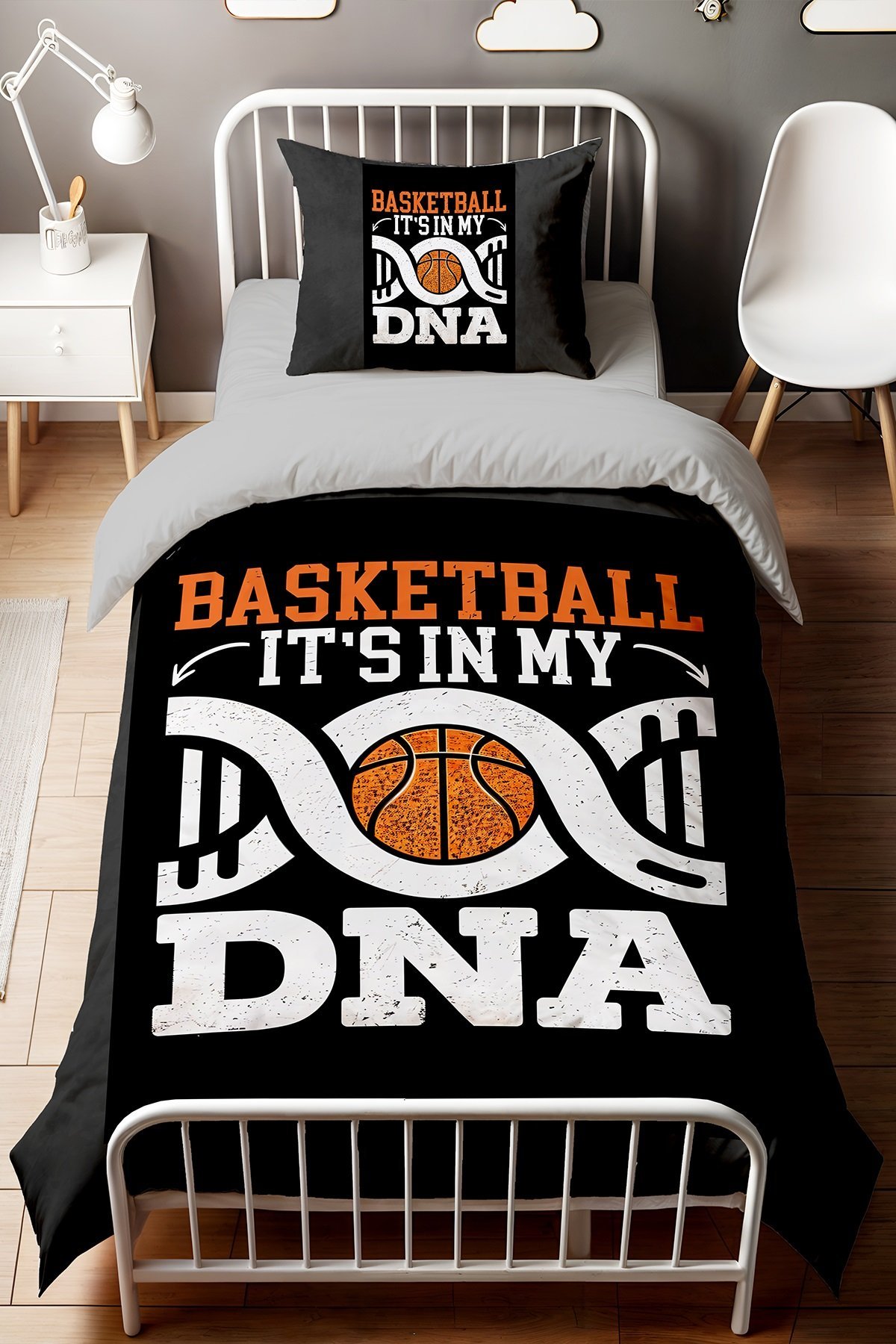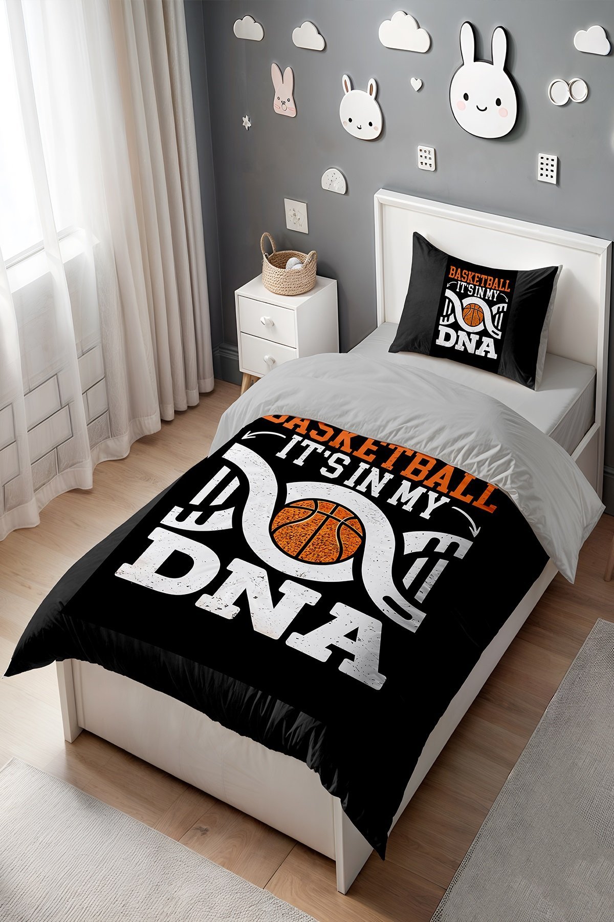 Basketbol DNA Desenli Tek Kişilik Bebek Çocuk Nevresim Seti