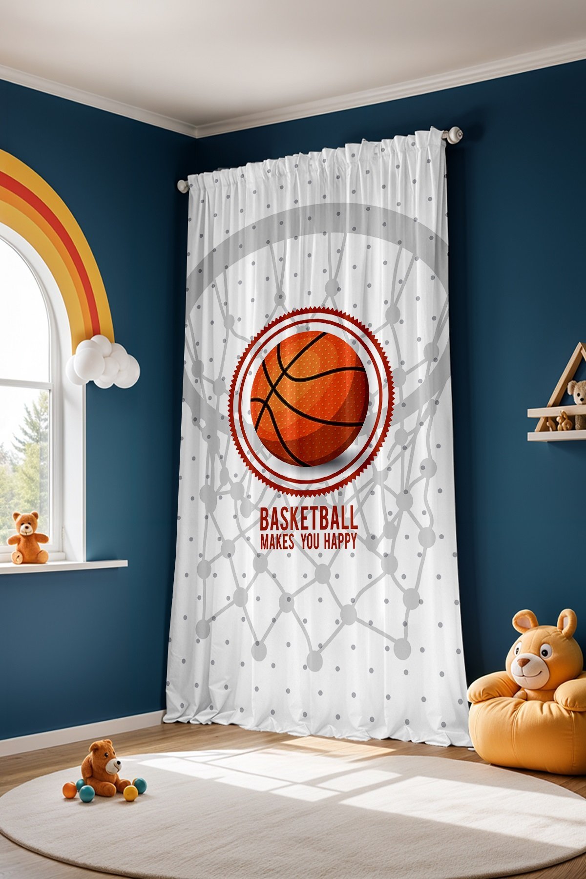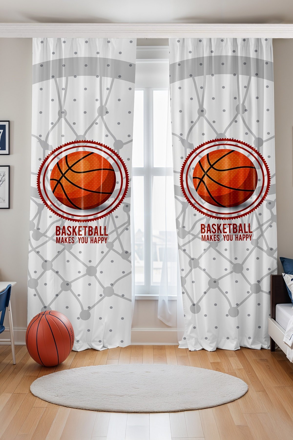 Basketbol Potası Desenli Çocuk Bebek Odası Fon Perde (Tek Kanat Fiyatlandırma)