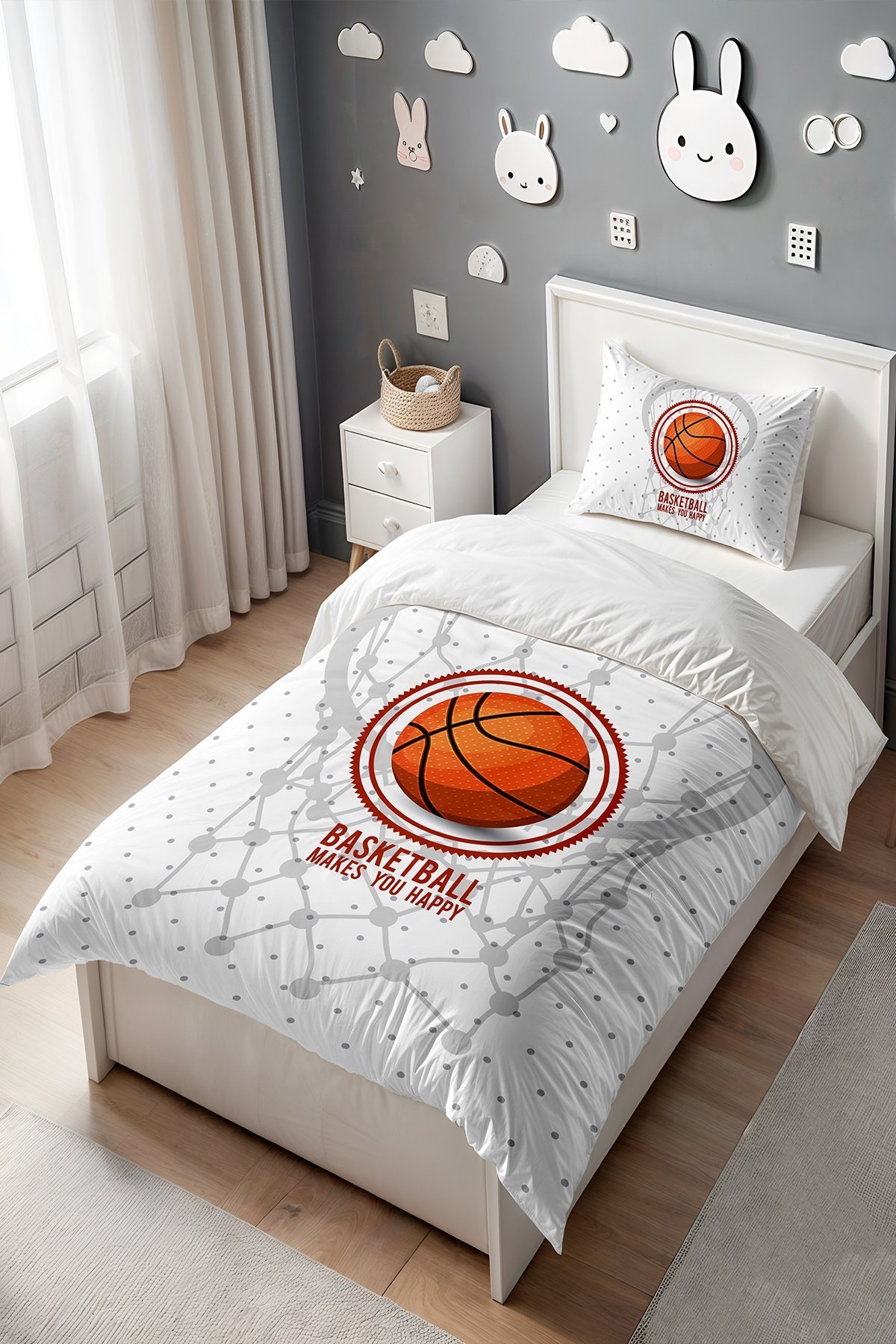 Basketbol Potası Desenli Tek Kişilik Bebek Çocuk Nevresim Seti