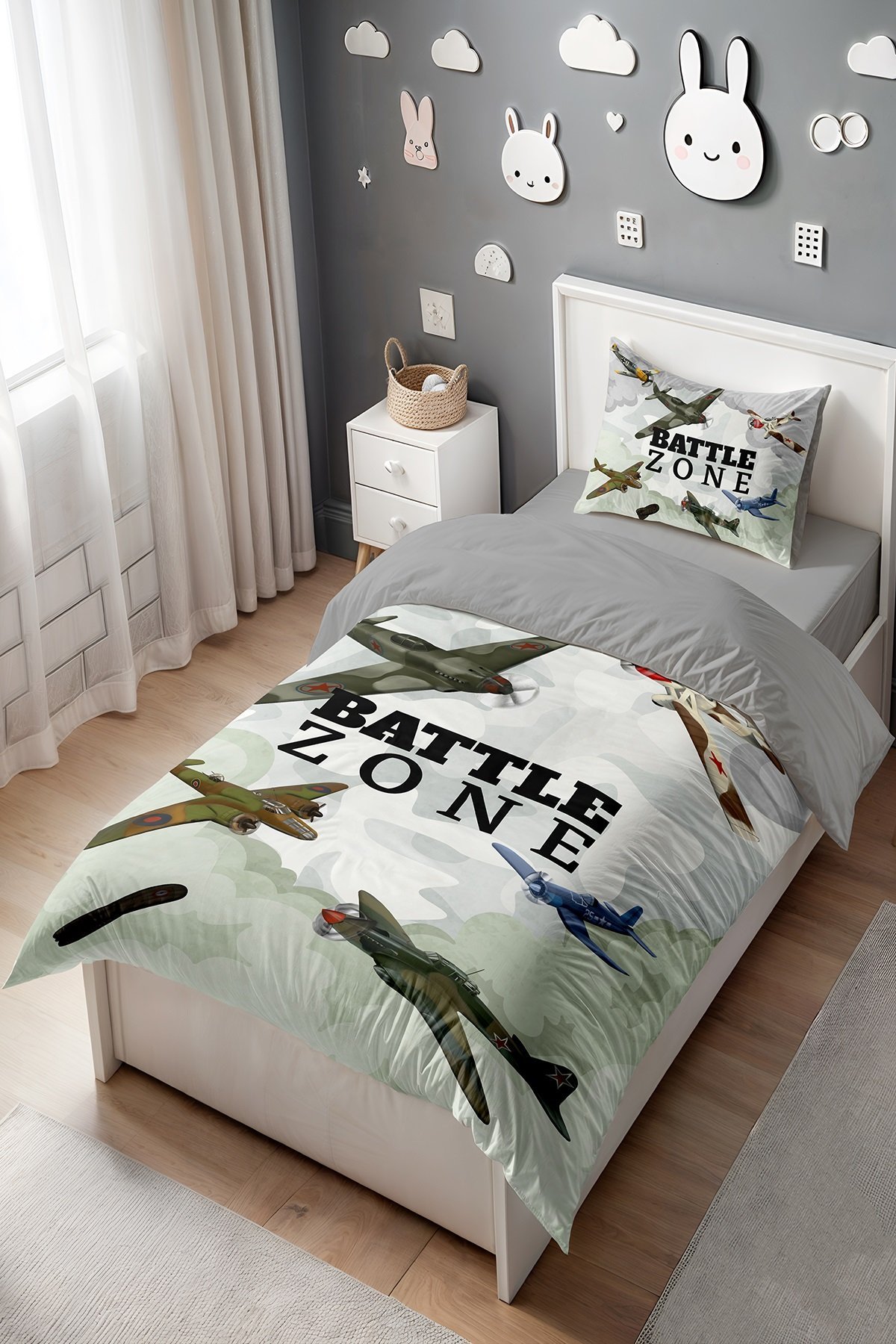 Battle Zone Desenli Tek Kişilik Bebek Çocuk Nevresim Seti