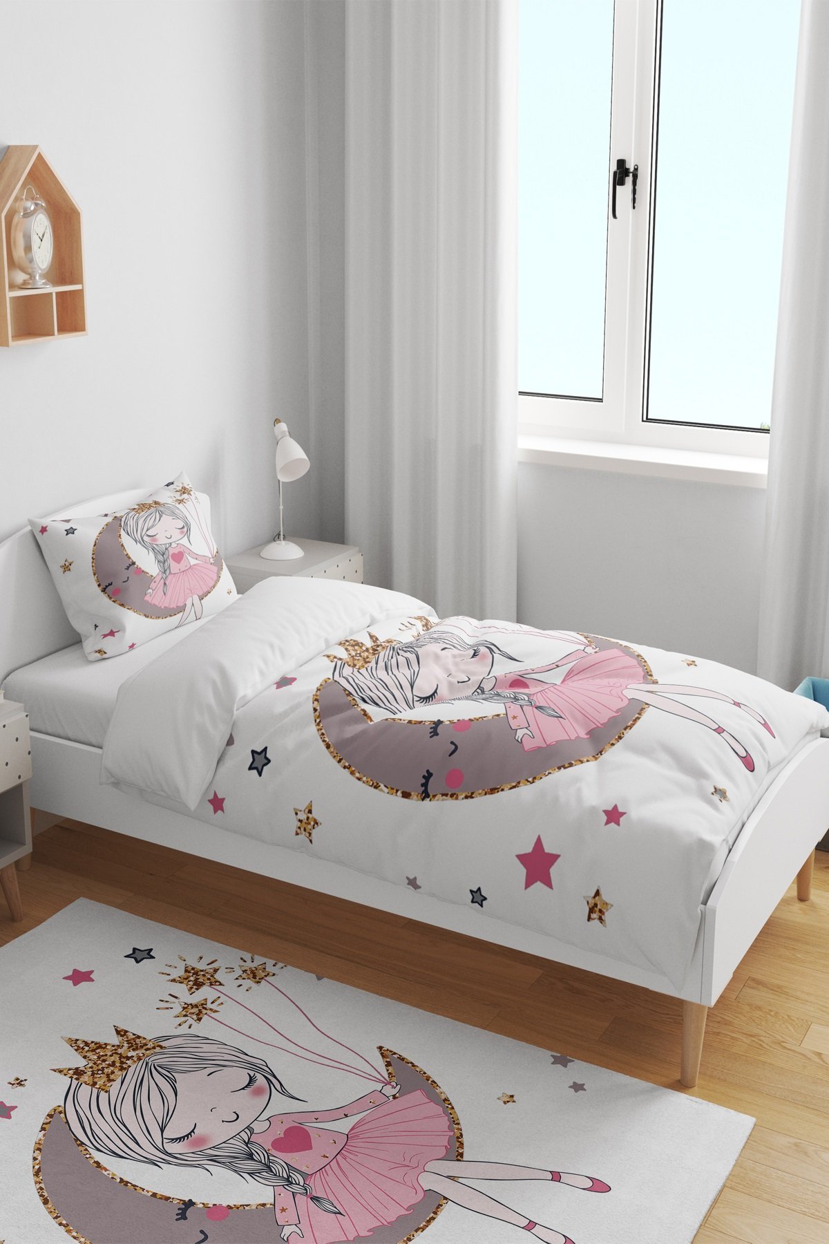 Beyaz Ay Üstündeki Prenses Desenli Tek Kişilik Bebek Çocuk Nevresim Takımı
