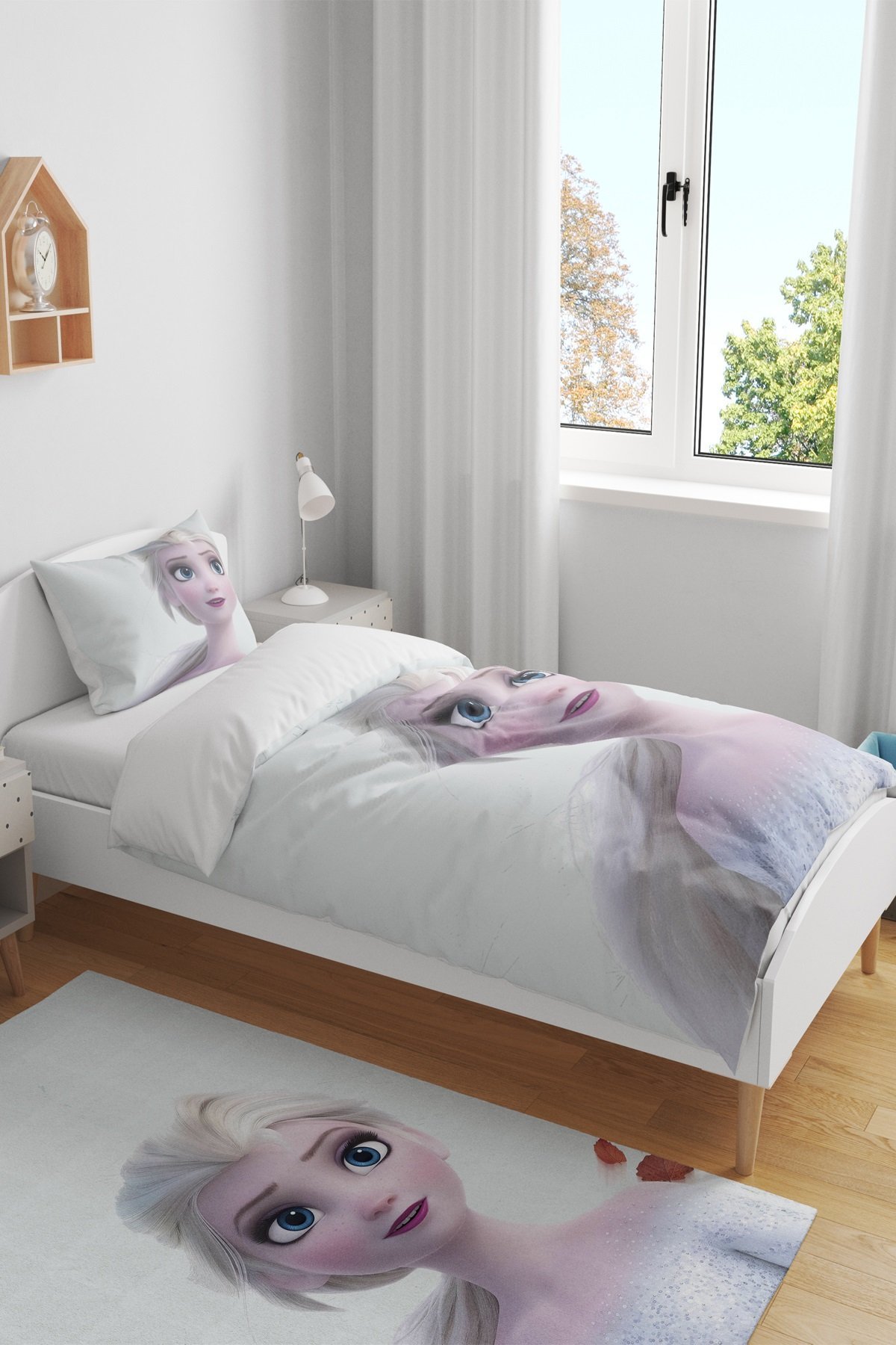 Beyaz Elsa Desenli Tek Kişilik Bebek Çocuk Nevresim Takımı