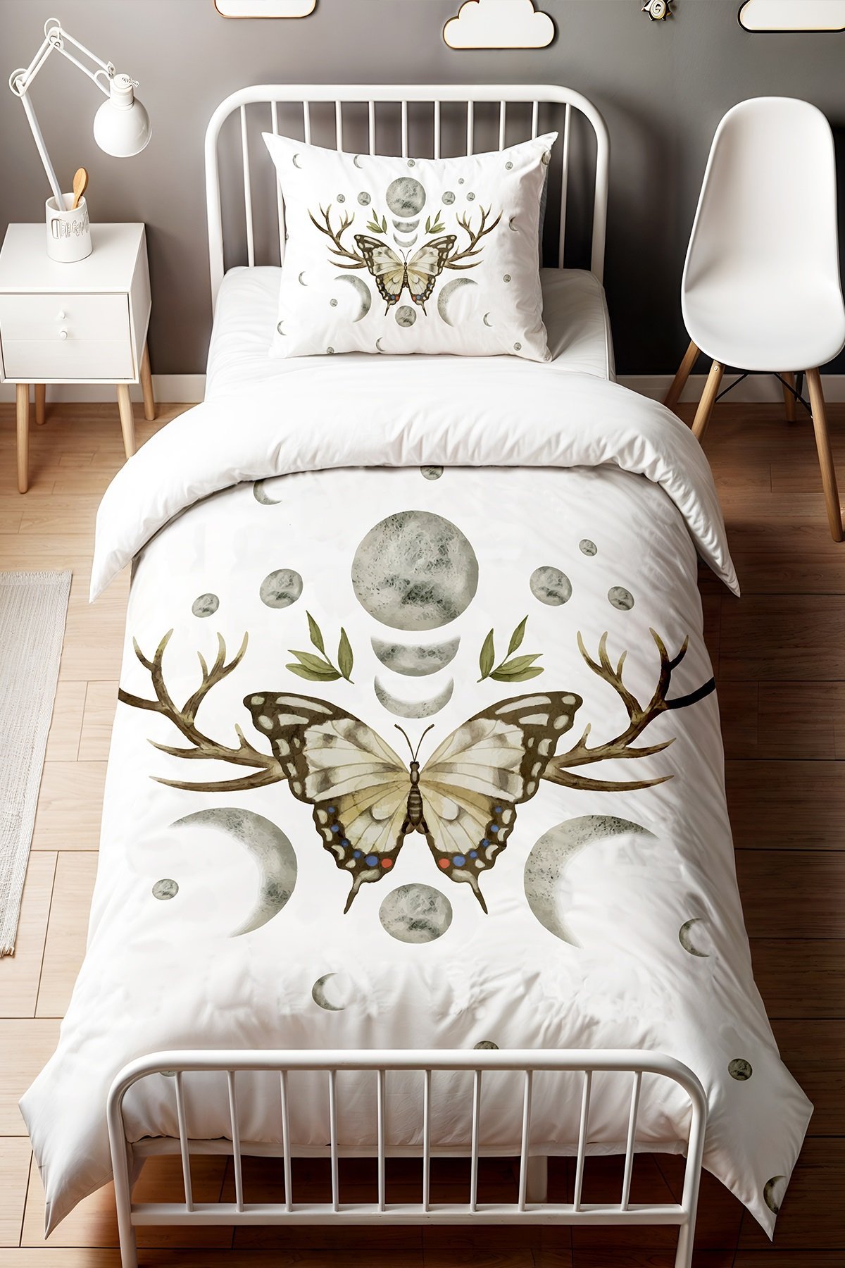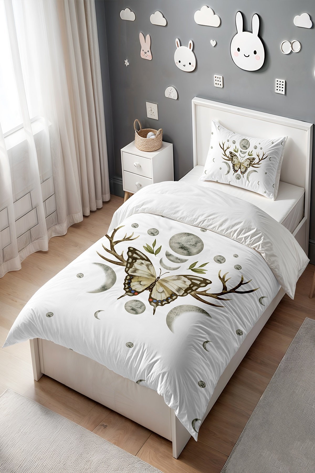 Bohem Aydaki Kelebek Desenli Tek Kişilik Bebek Çocuk Nevresim Seti