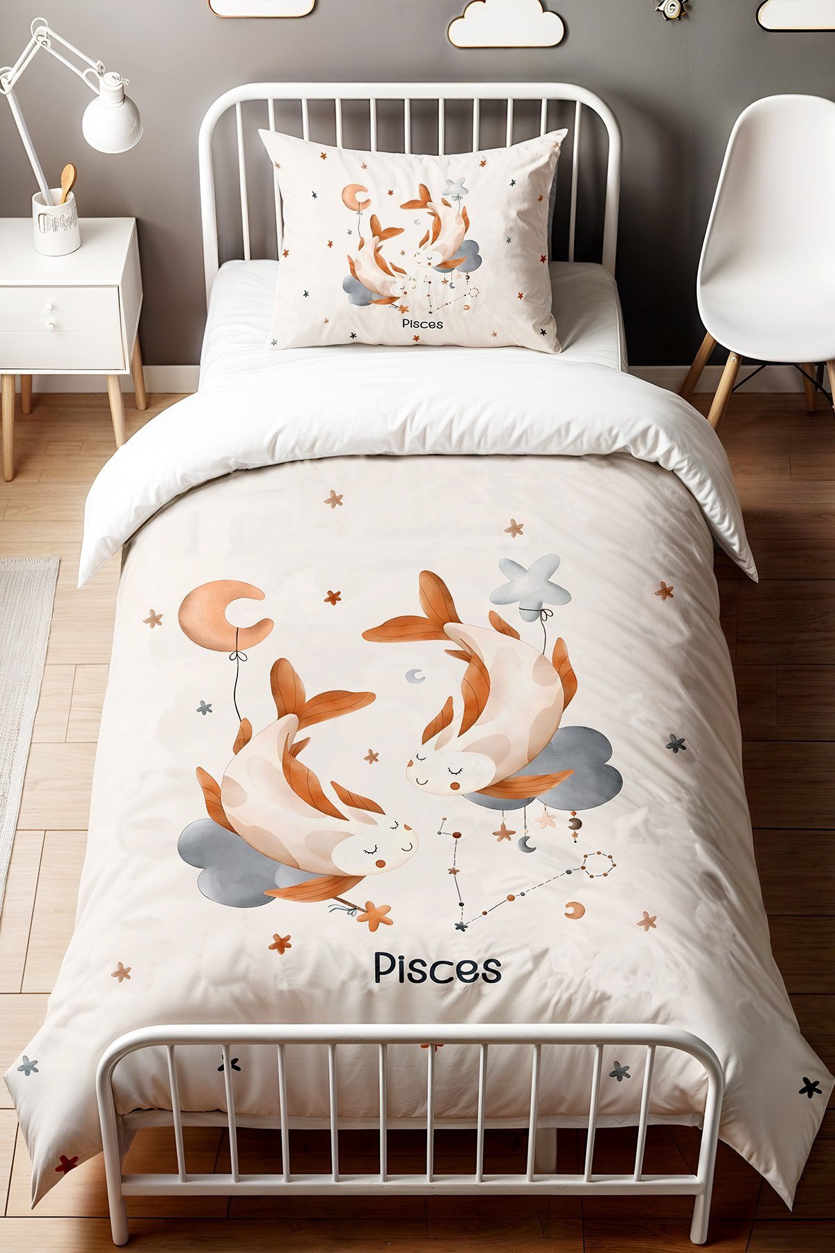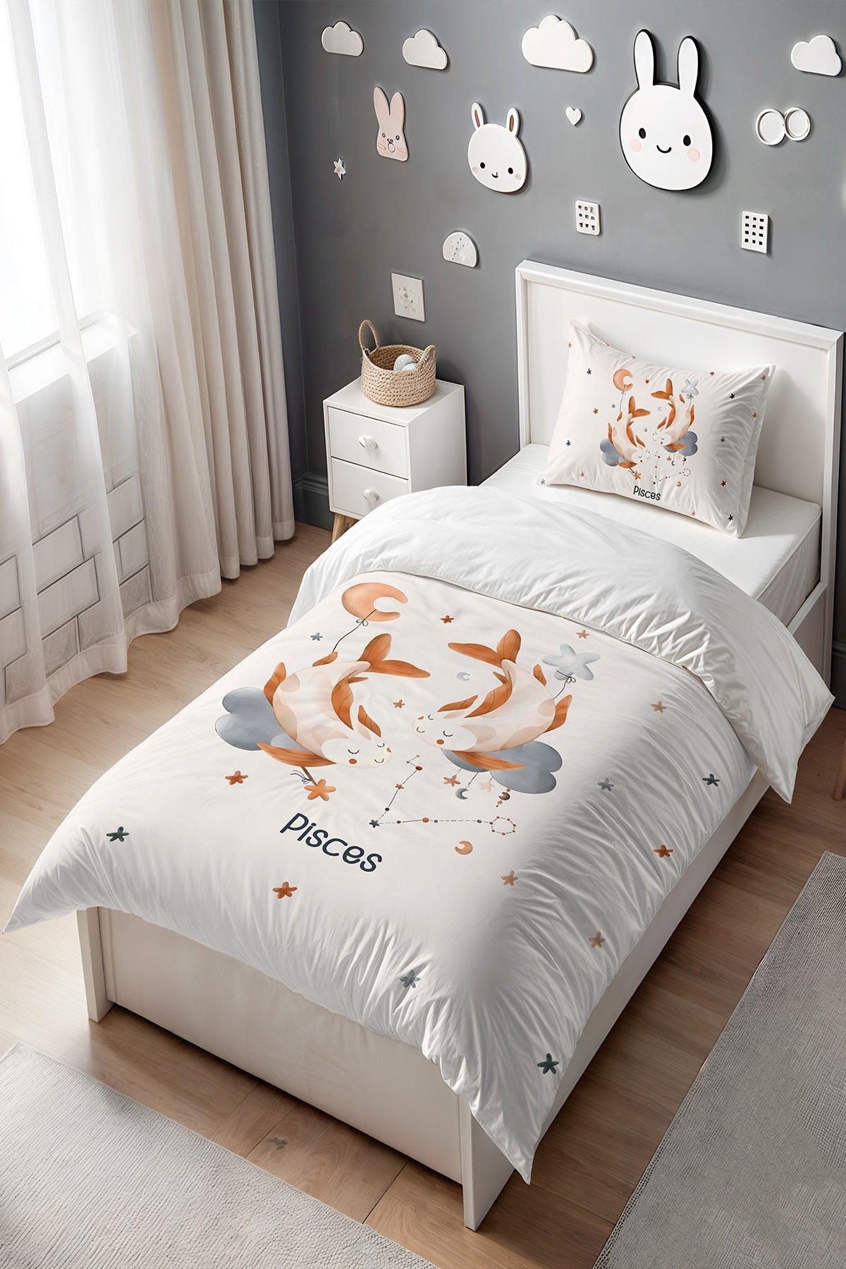 Bohem Balık Burcu Desenli Tek Kişilik Bebek Çocuk Nevresim Seti