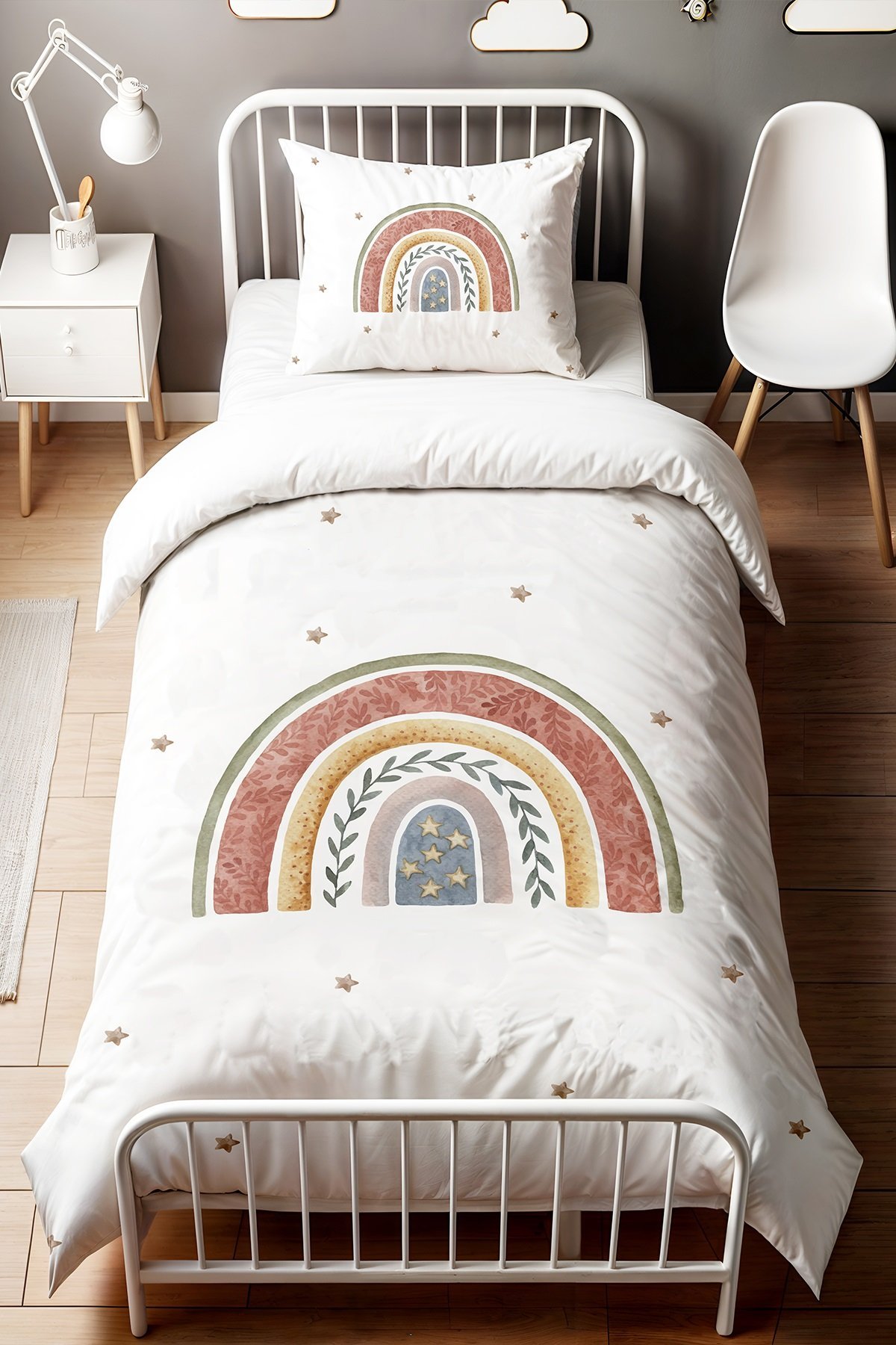 Bohem Çiçekli Gökkuşağı Desenli Tek Kişilik Bebek Çocuk Nevresim Seti