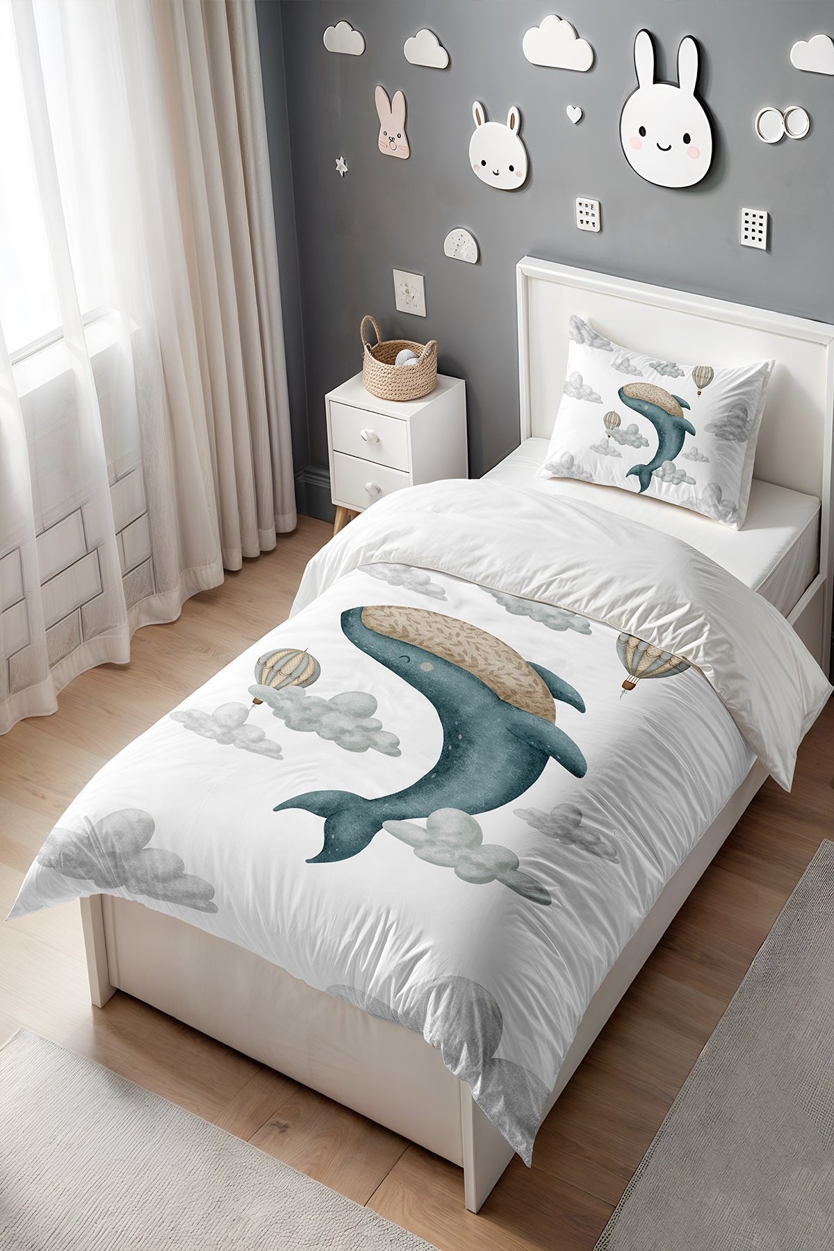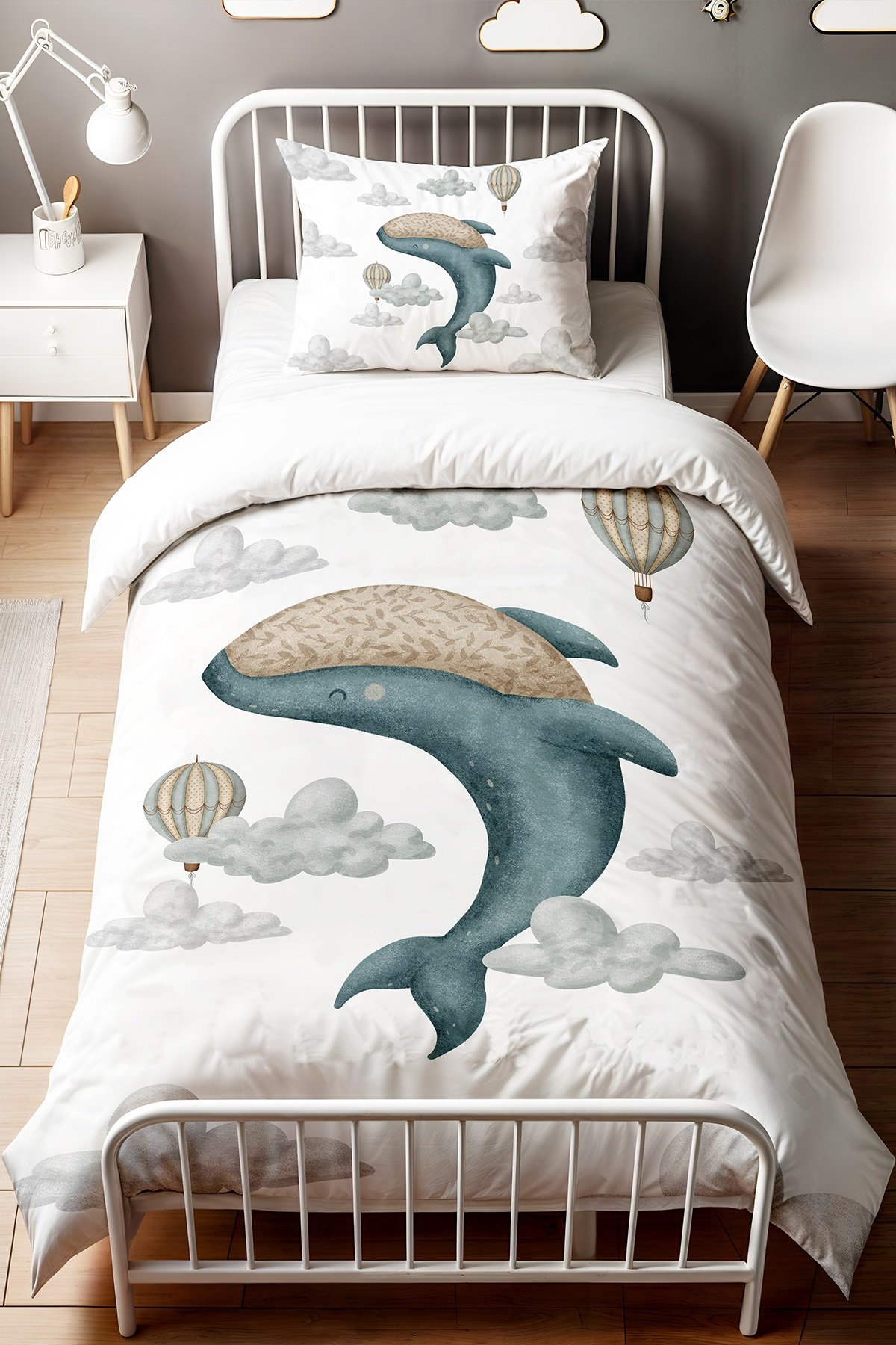 Bohem Dansçı Mavi Balina Desenli Tek Kişilik Bebek Çocuk Nevresim Seti