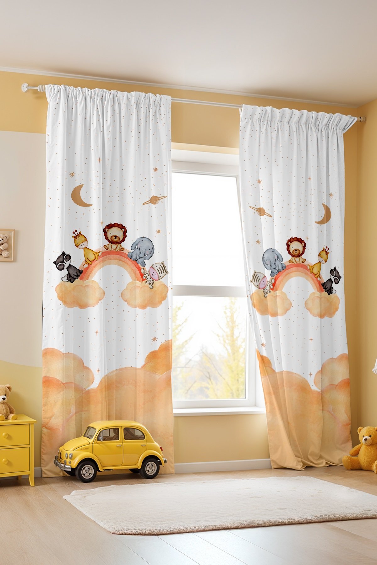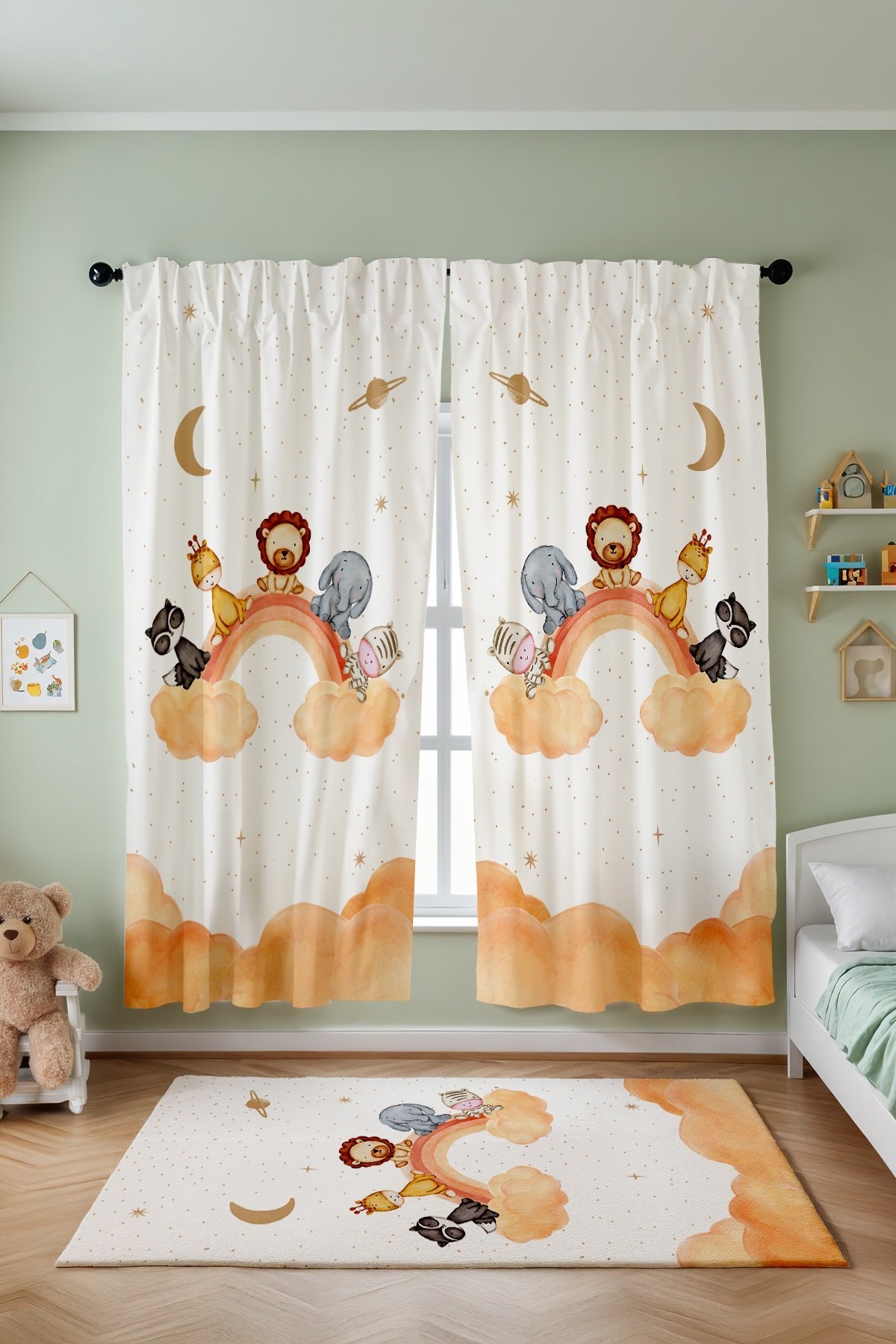 Bulutlu Gökkuşağı Safari Desenli Çocuk Bebek Odası Fon Perde (Tek Kanat Fiyatlandırma)
