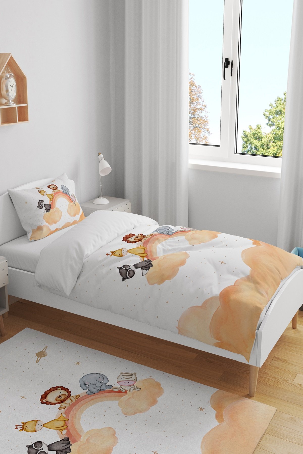 Bulutlu Gökkuşağı Safari Desenli Tek Kişilik Bebek Çocuk Nevresim Seti