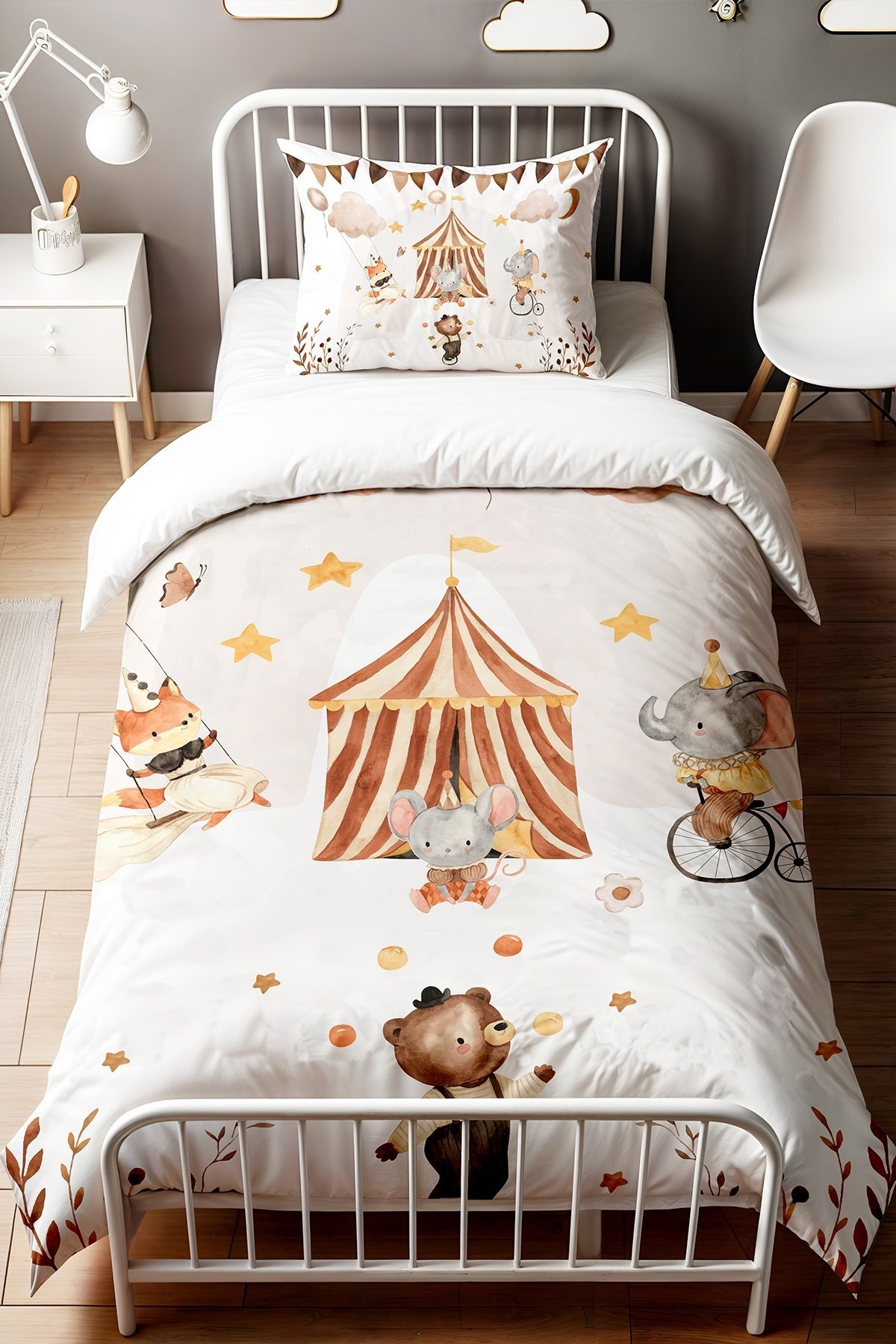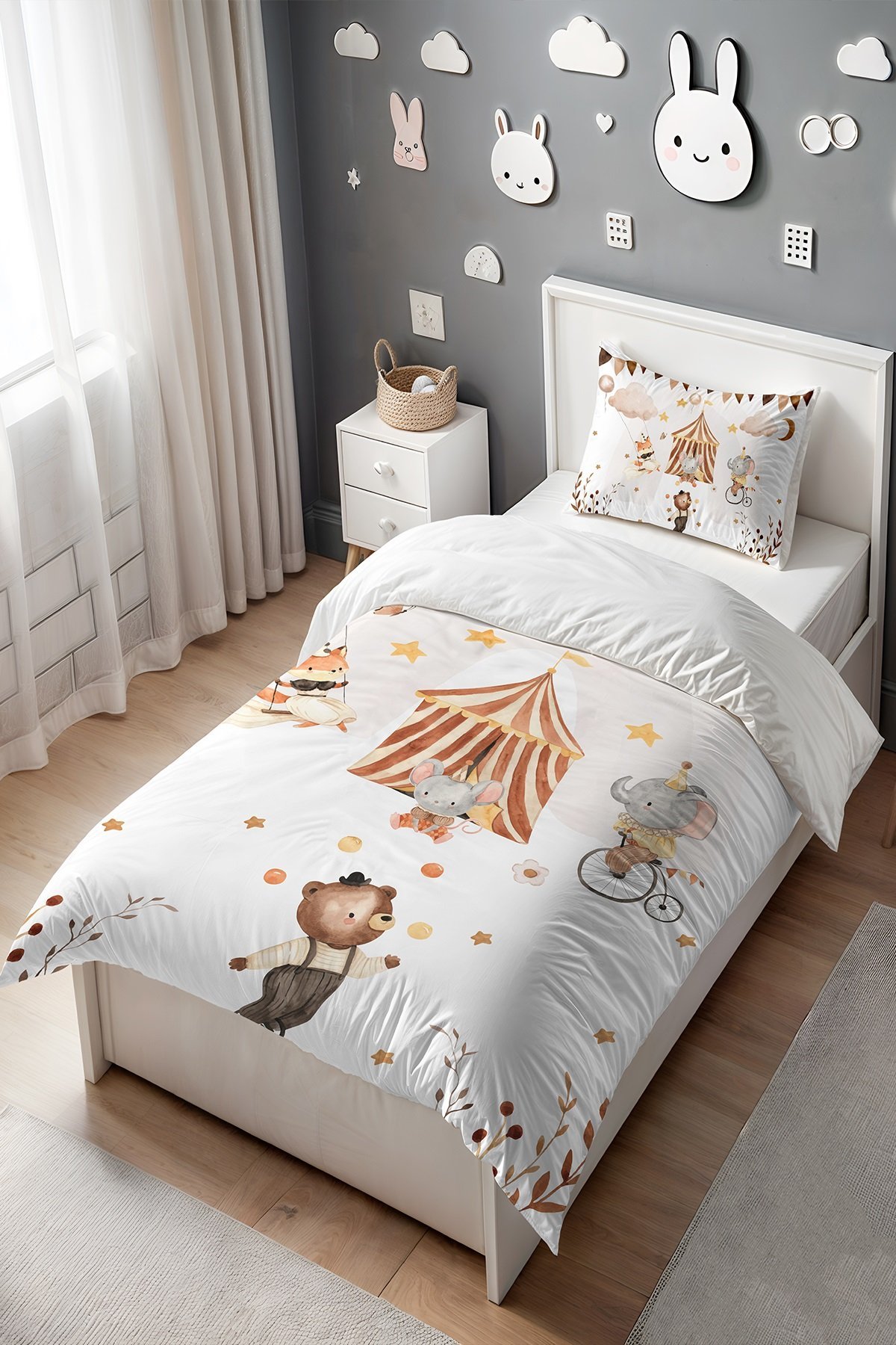 Çadırlı Sirk Dostları Desenli Tek Kişilik Bebek Çocuk Nevresim Seti