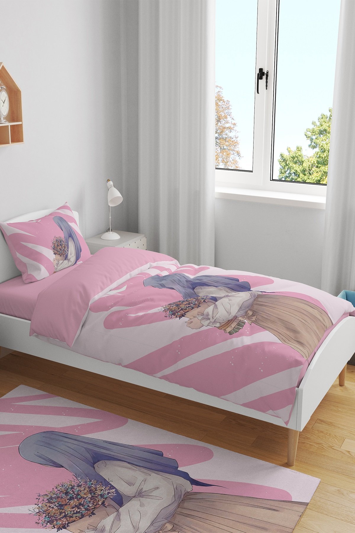 Çiçek Buketli Kız Desenli Tek Kişilik Bebek Çocuk Nevresim Seti